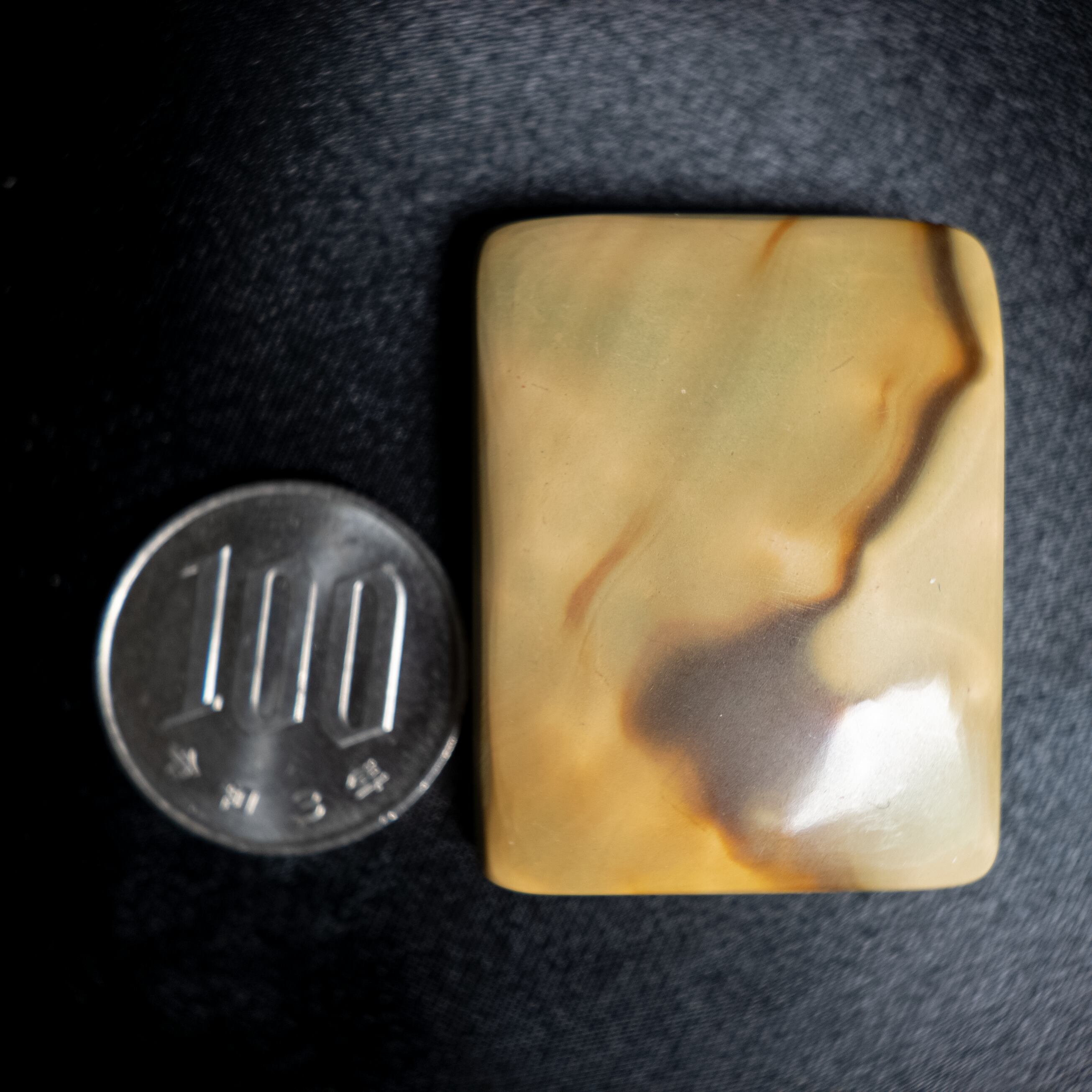 穏やかなベージュを基調に、ブラウンの流れるような模様が入るポリクロームジャスパー。