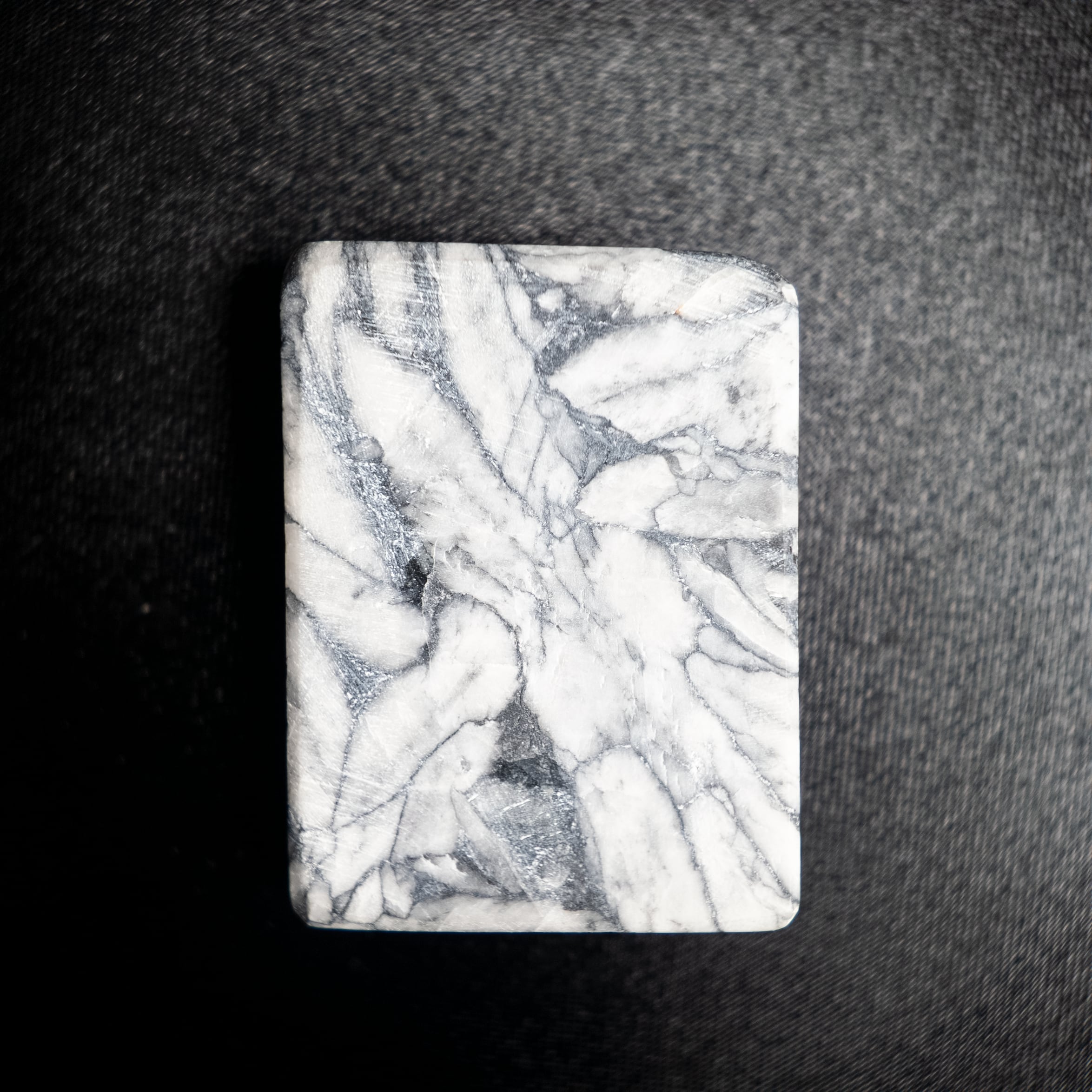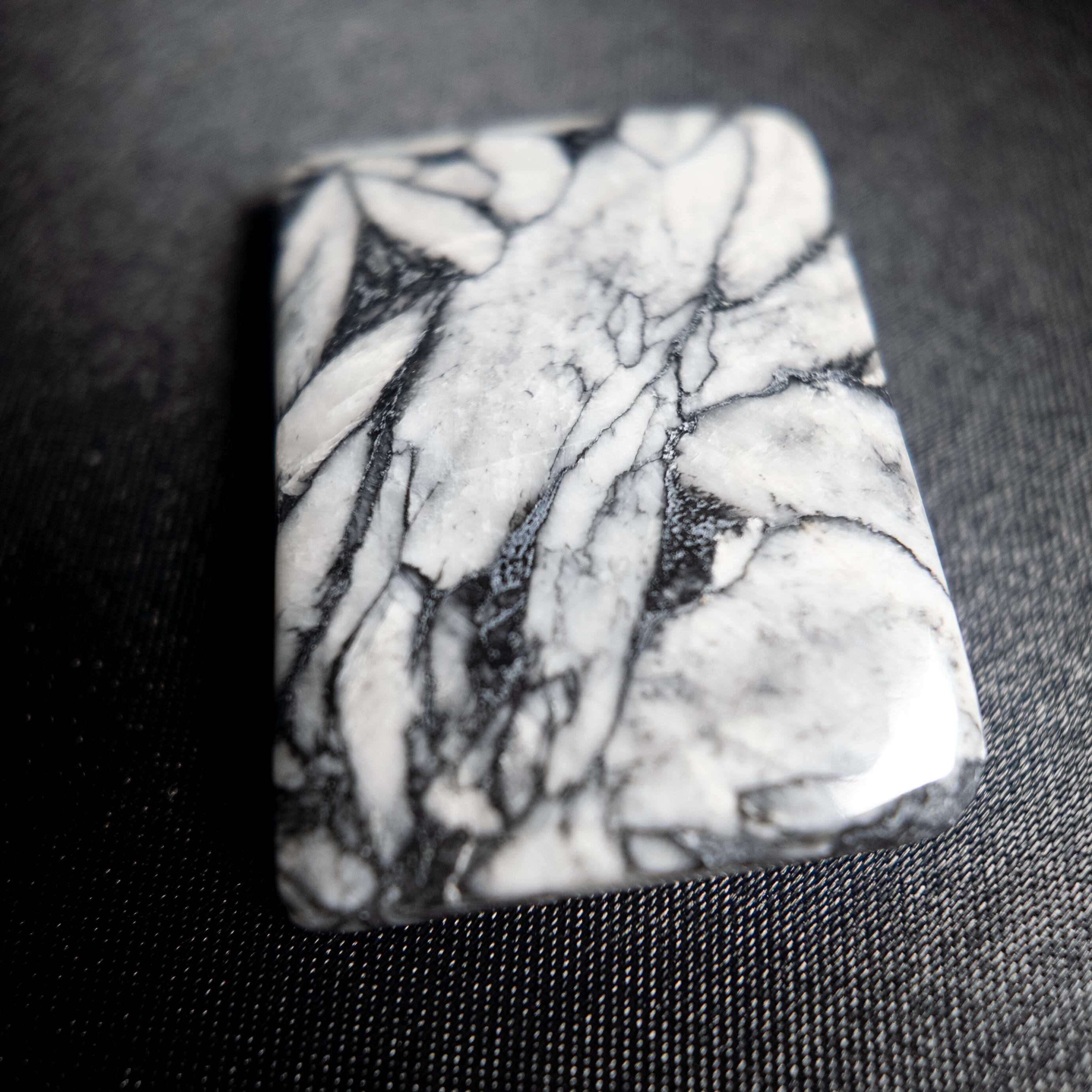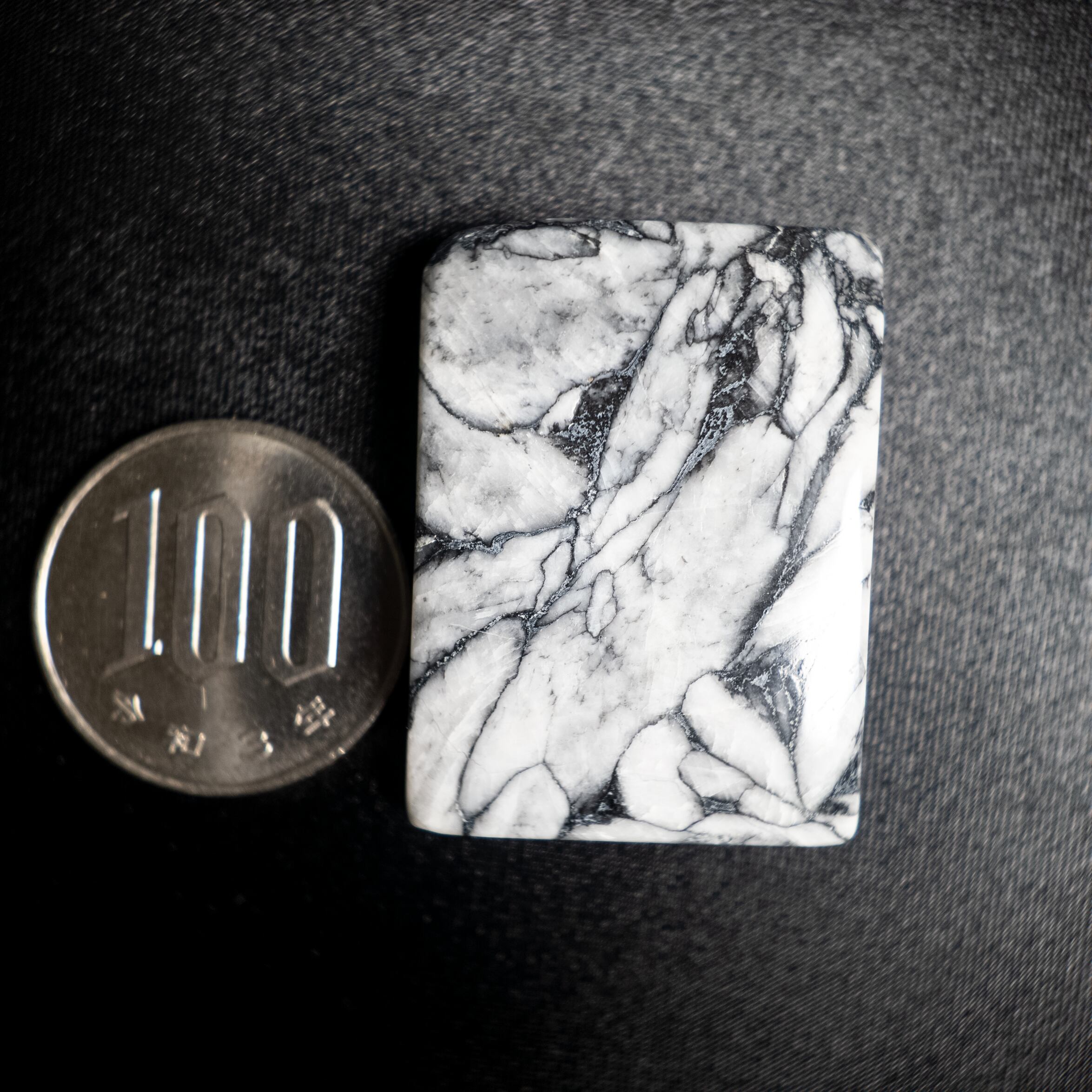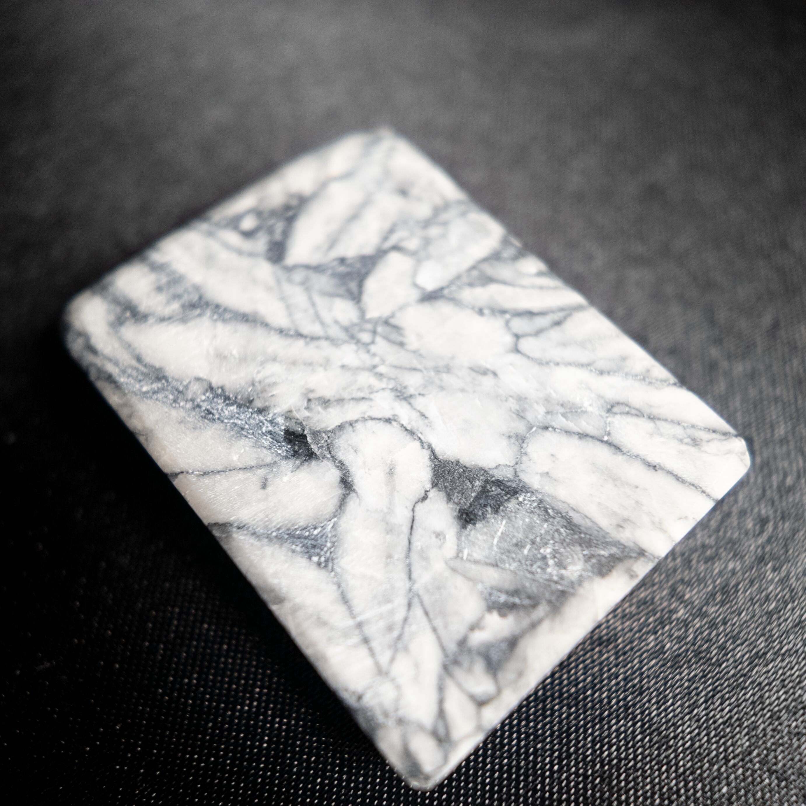 白を基調とした地の中に、黒やグレーの結晶模様が現れる天然石です。