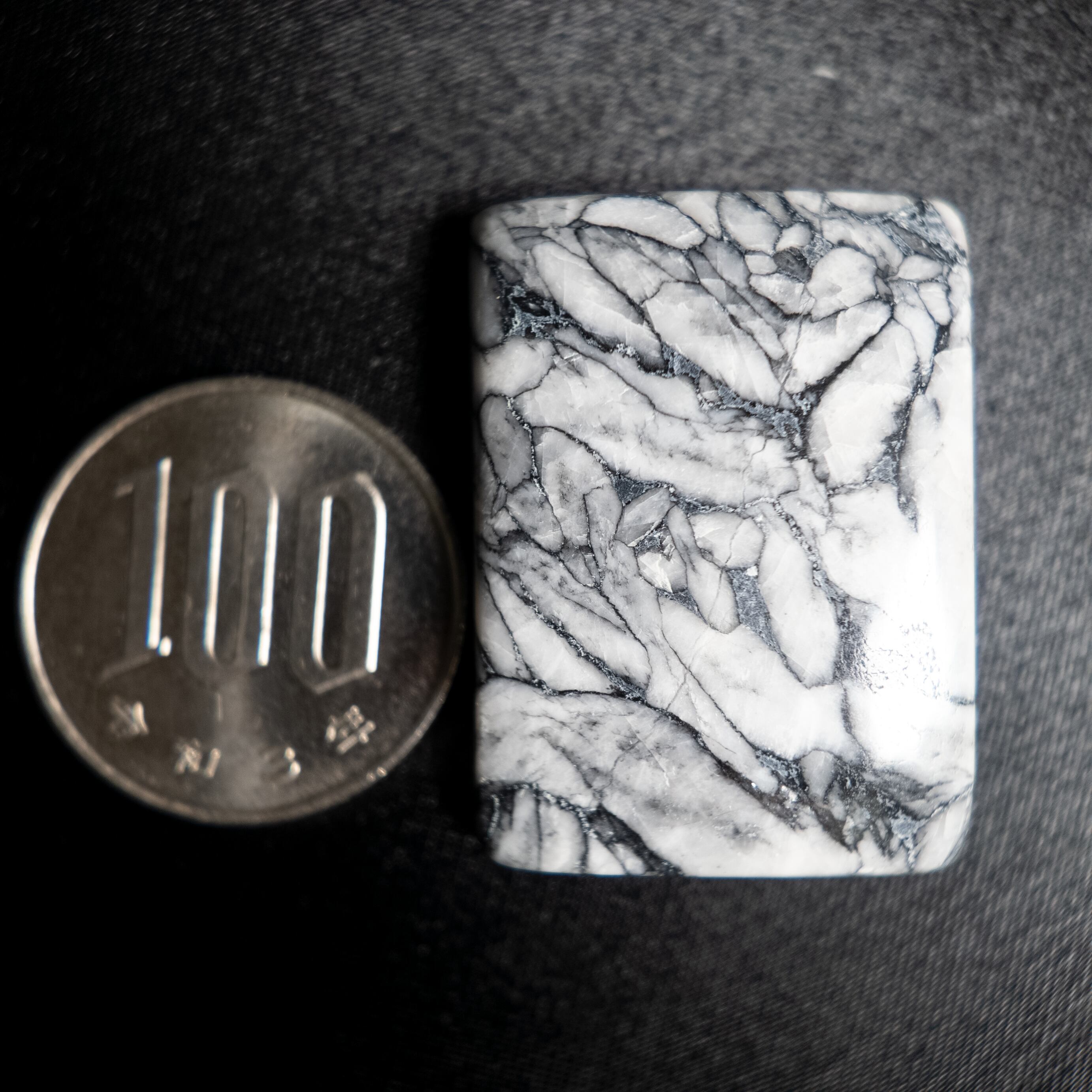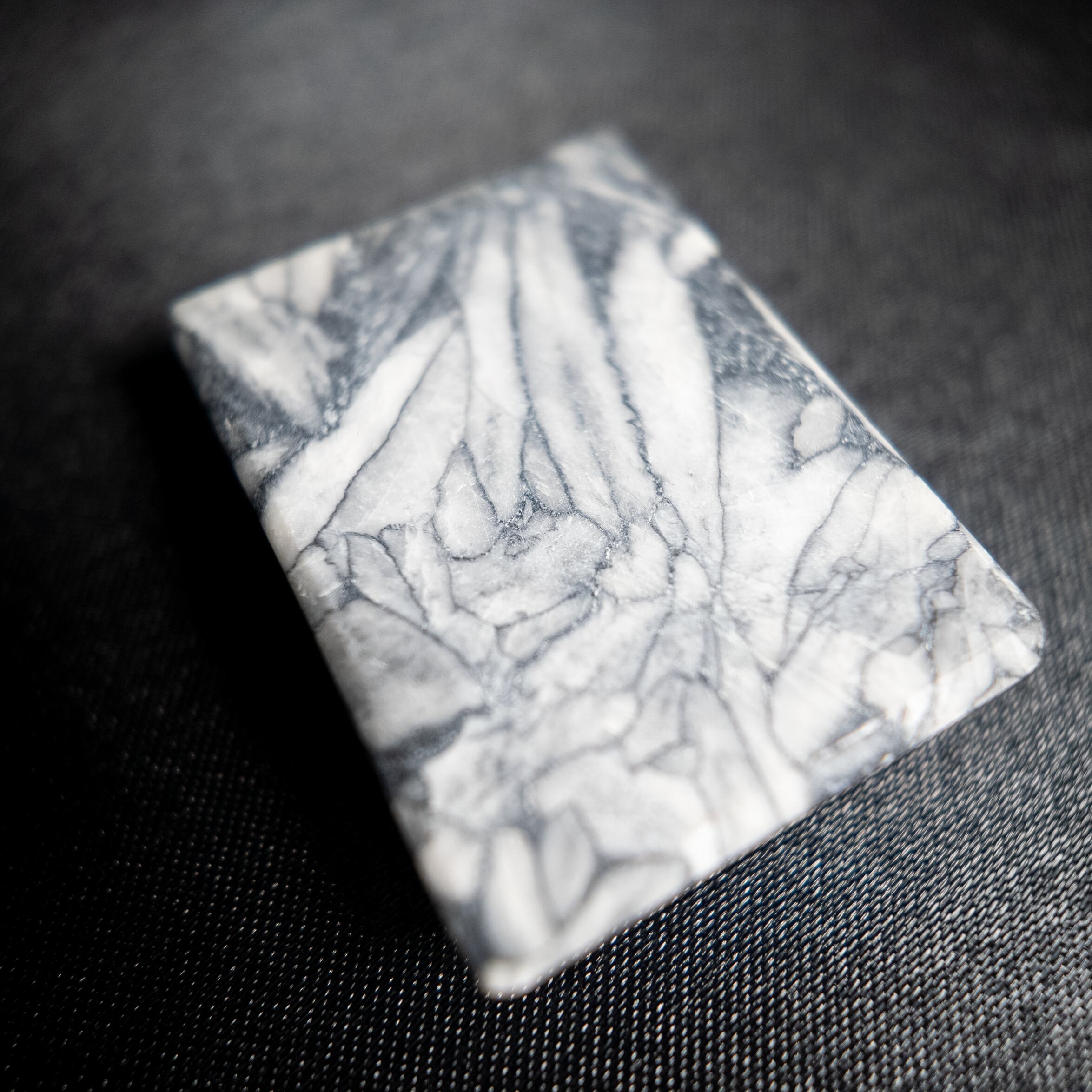 白を基調とした地の中に、黒やグレーの結晶模様が現れる天然石です。