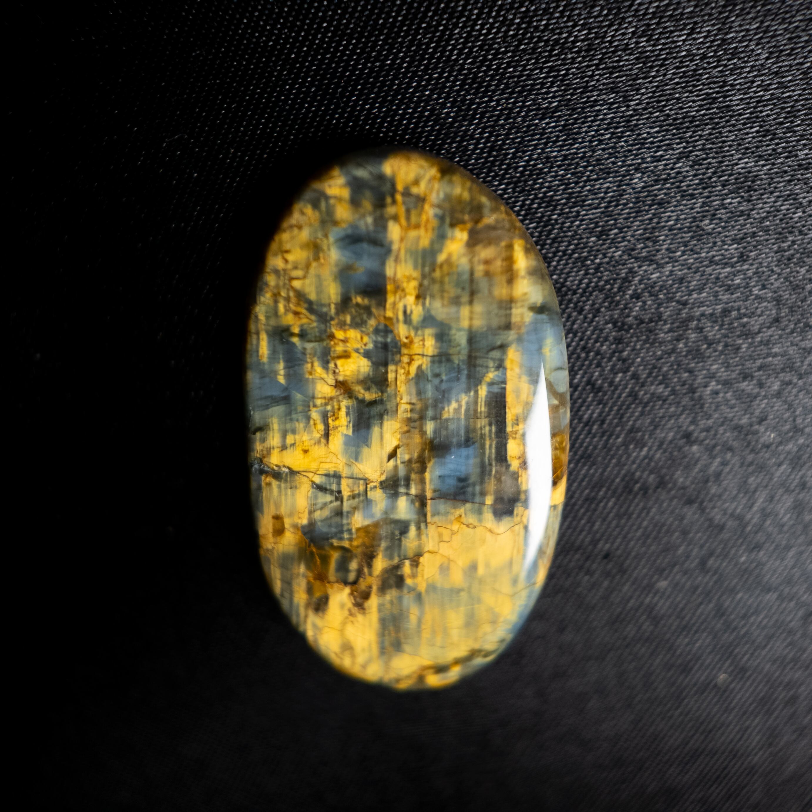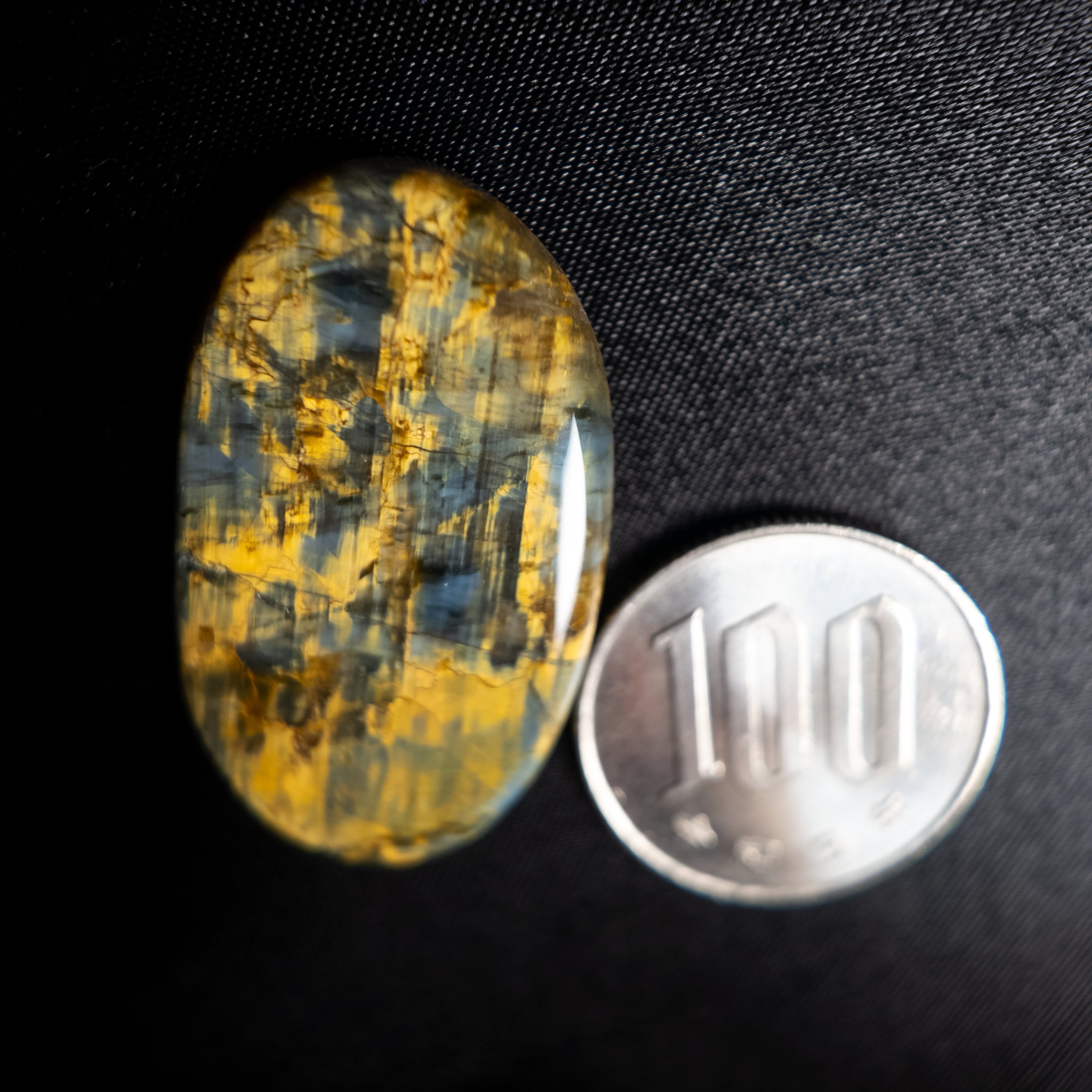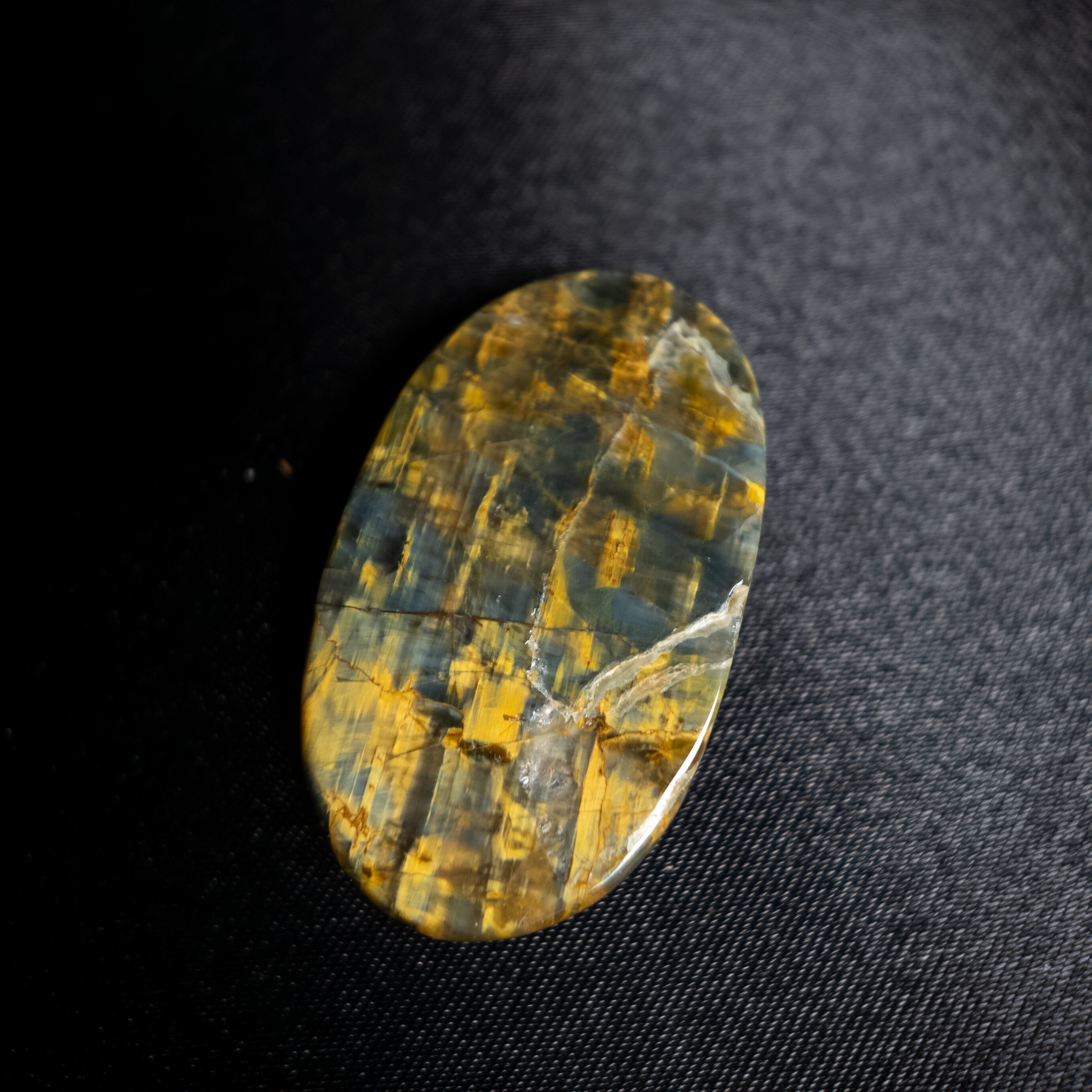 光の角度によって帯状の輝き(シャトヤンシー効果)が現れ、落ち着きのある力強い印象を与えます。