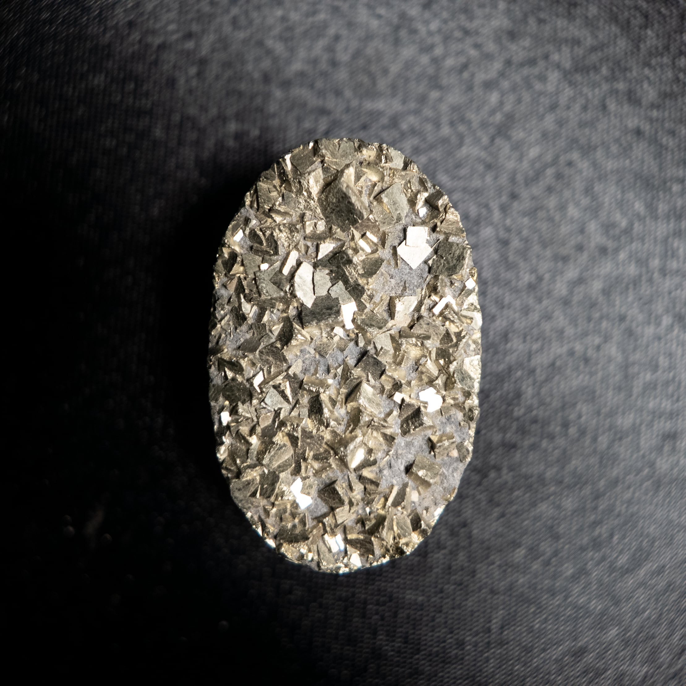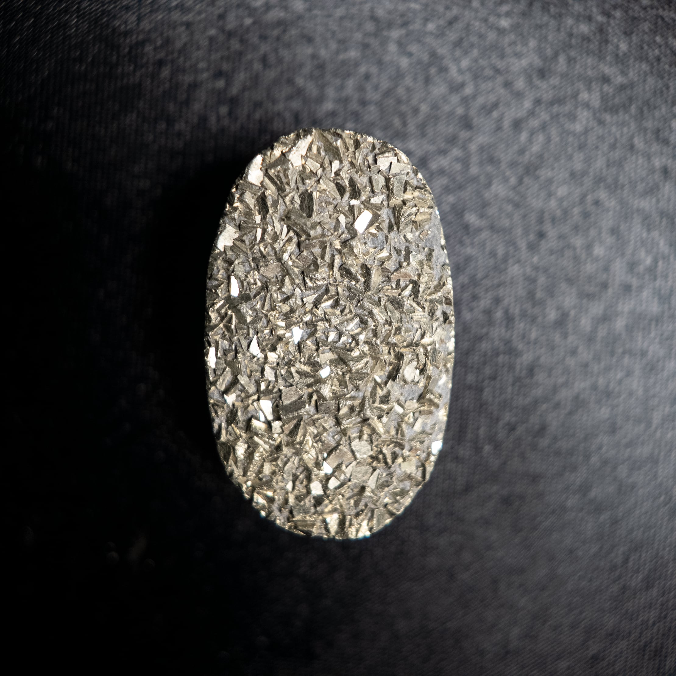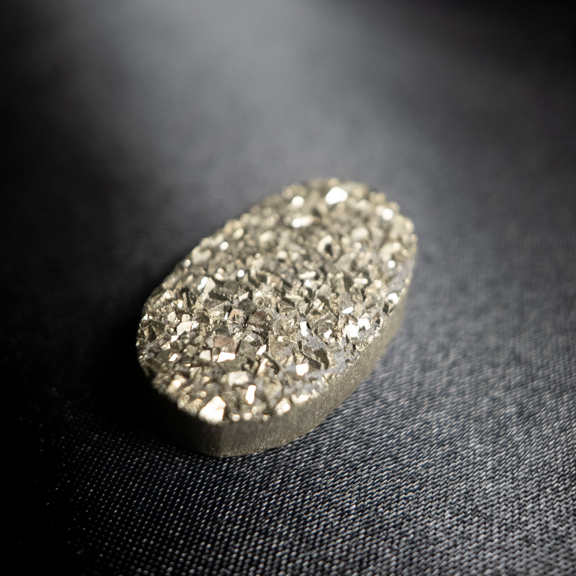 細やかな結晶が集まり、繊細なきらめきを放つパイライトです。