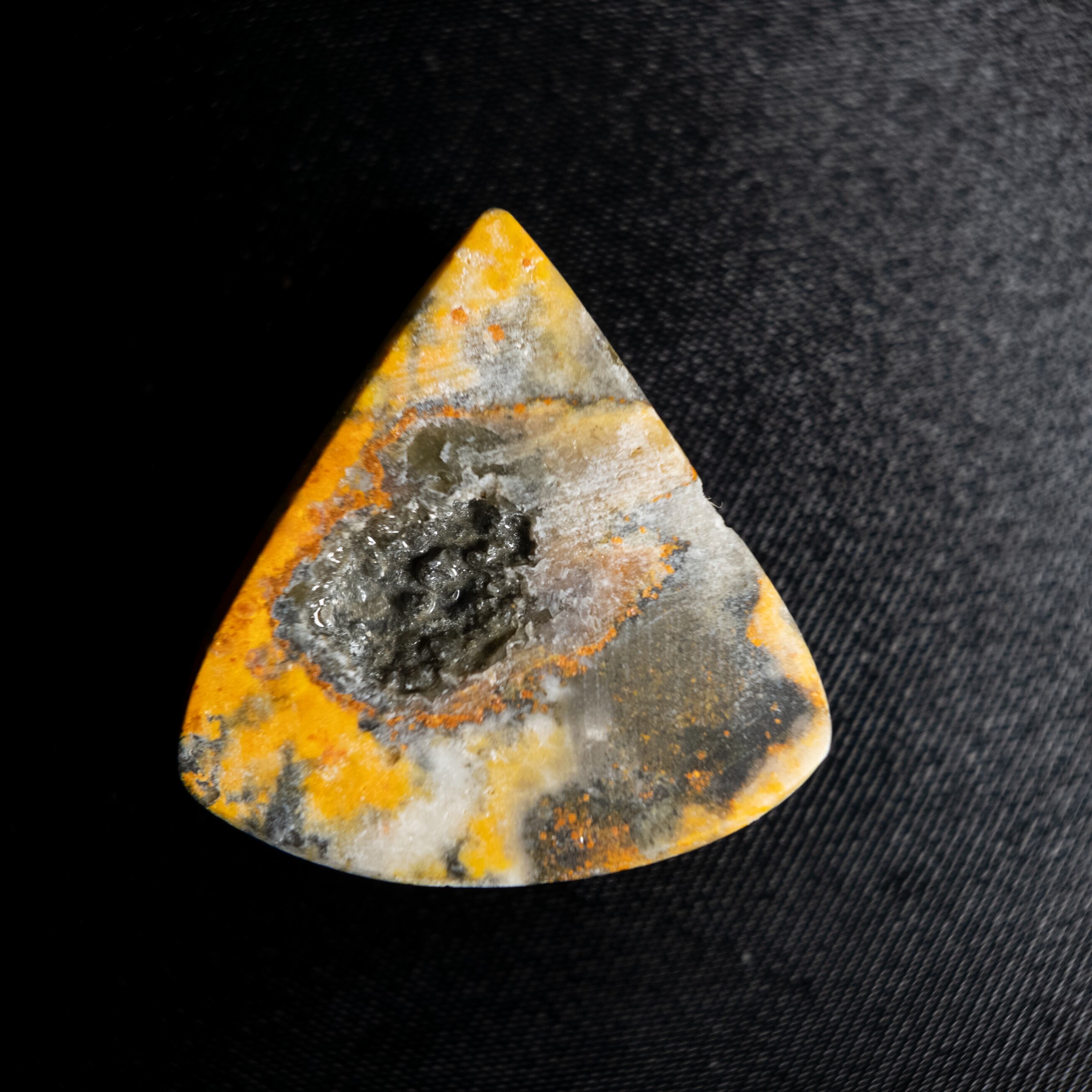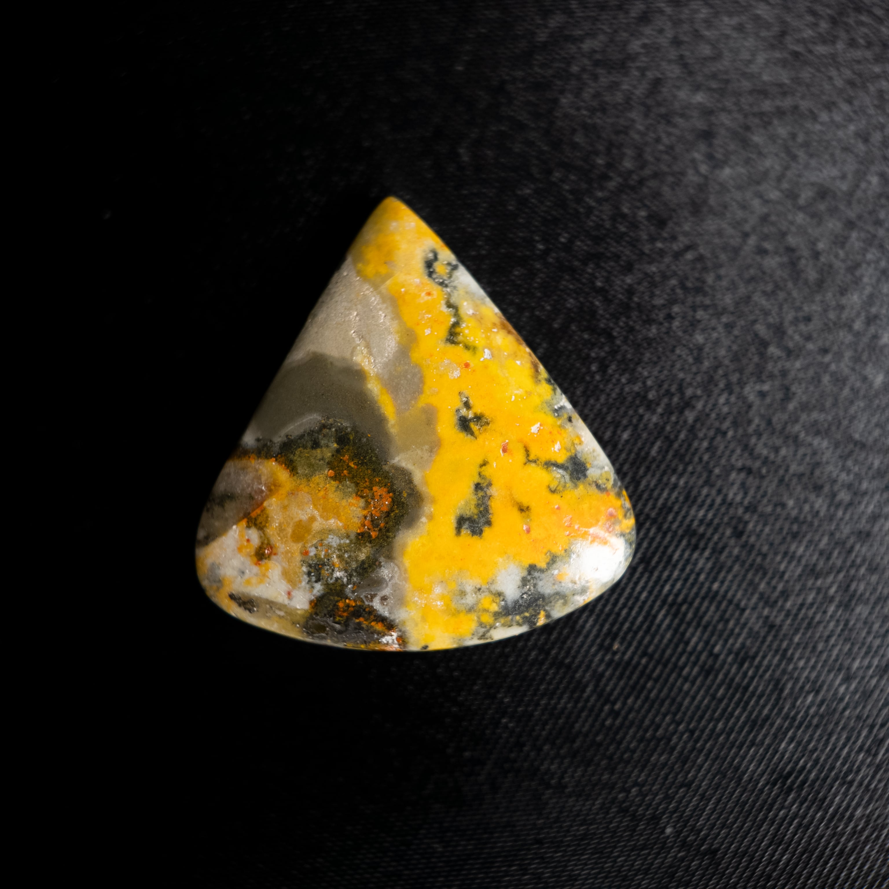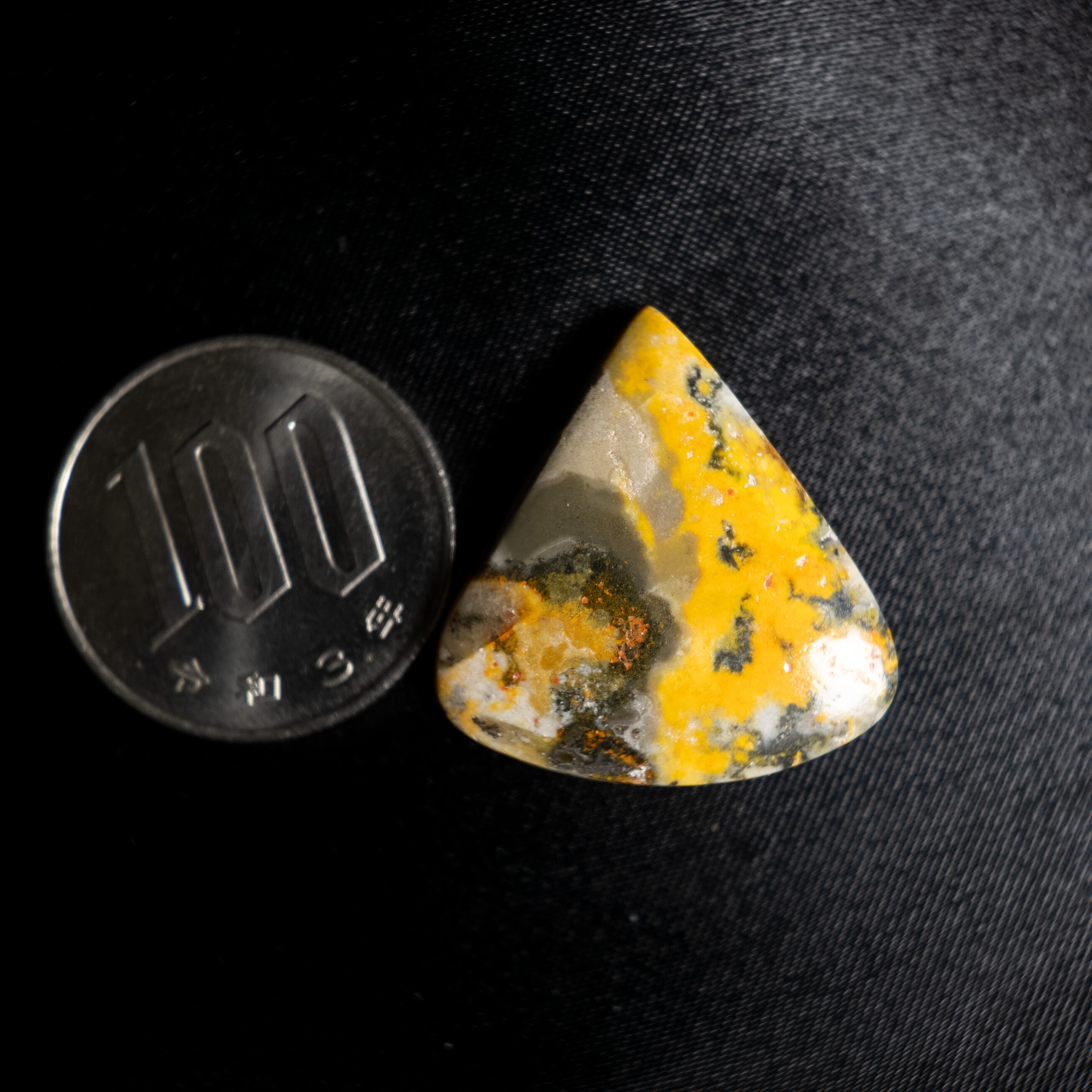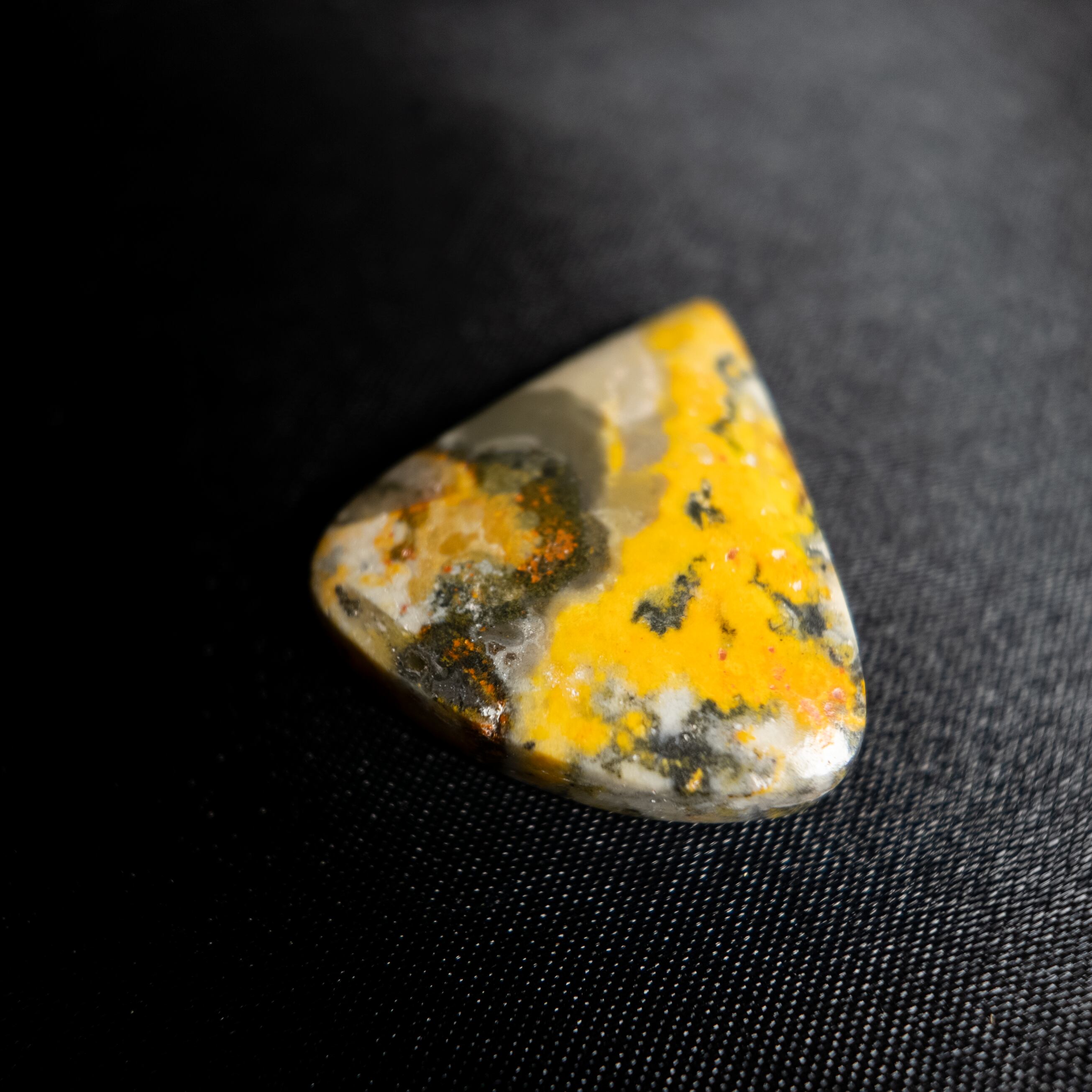鮮やかなイエローとグレー、ブラックが混ざり合うバンブルビージャスパーです。