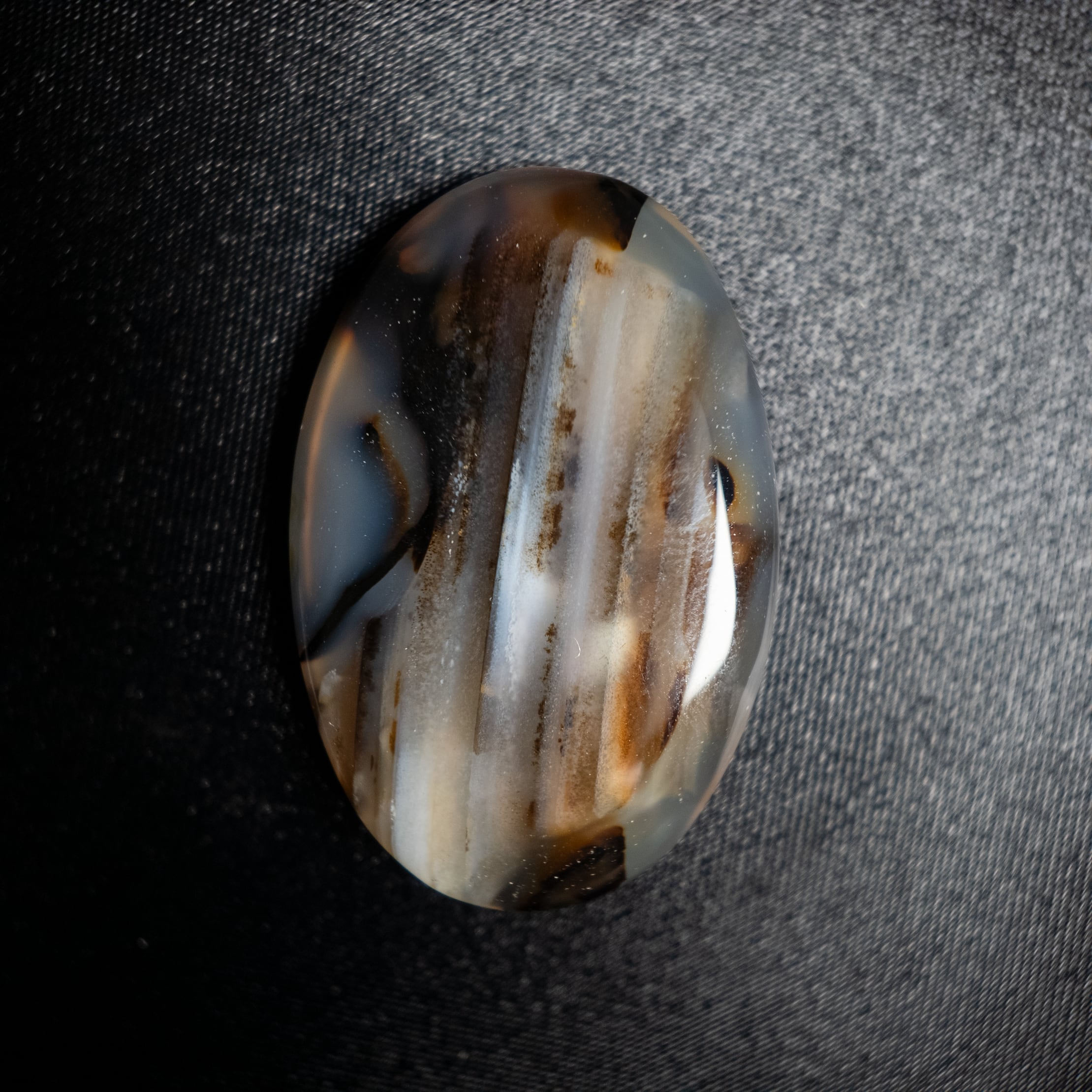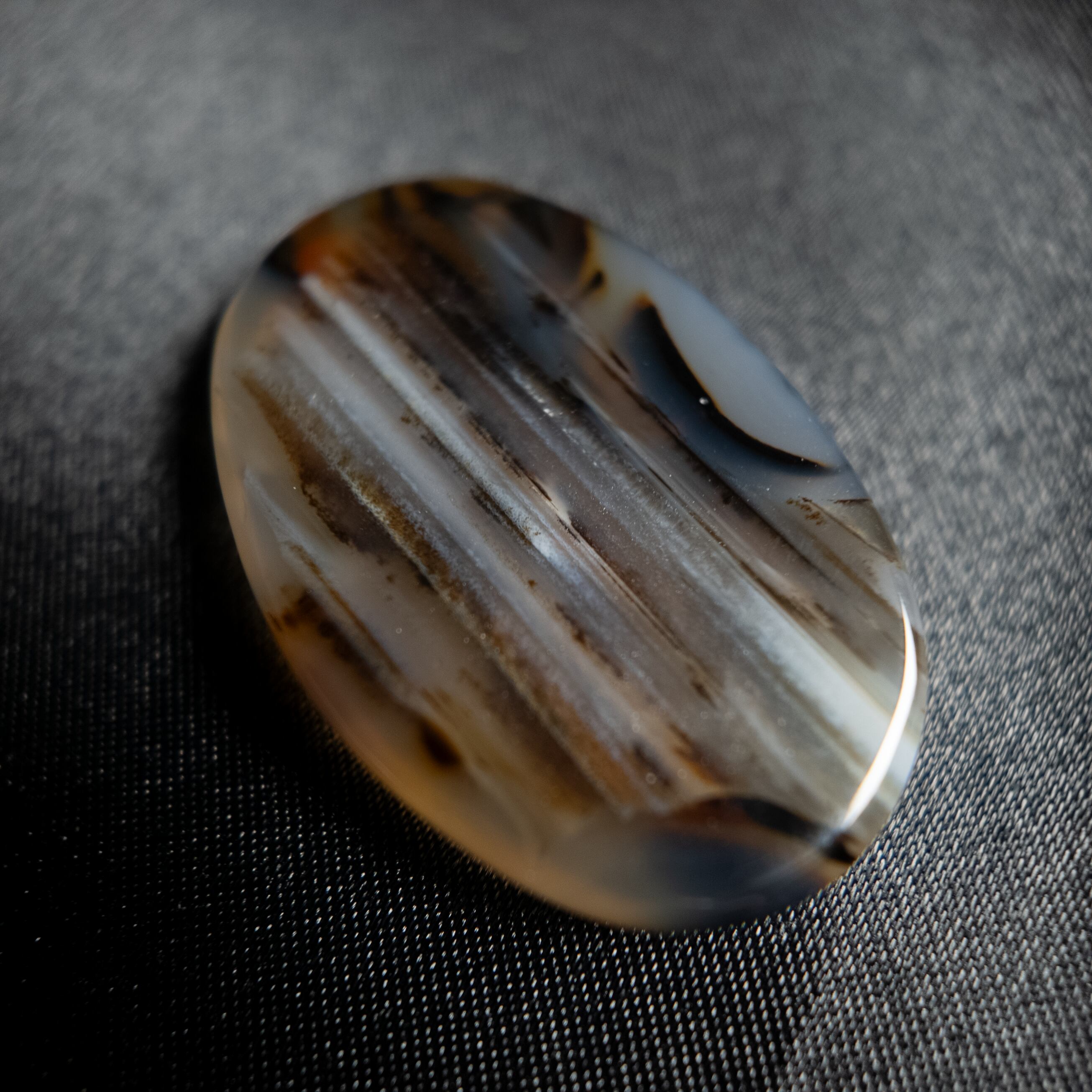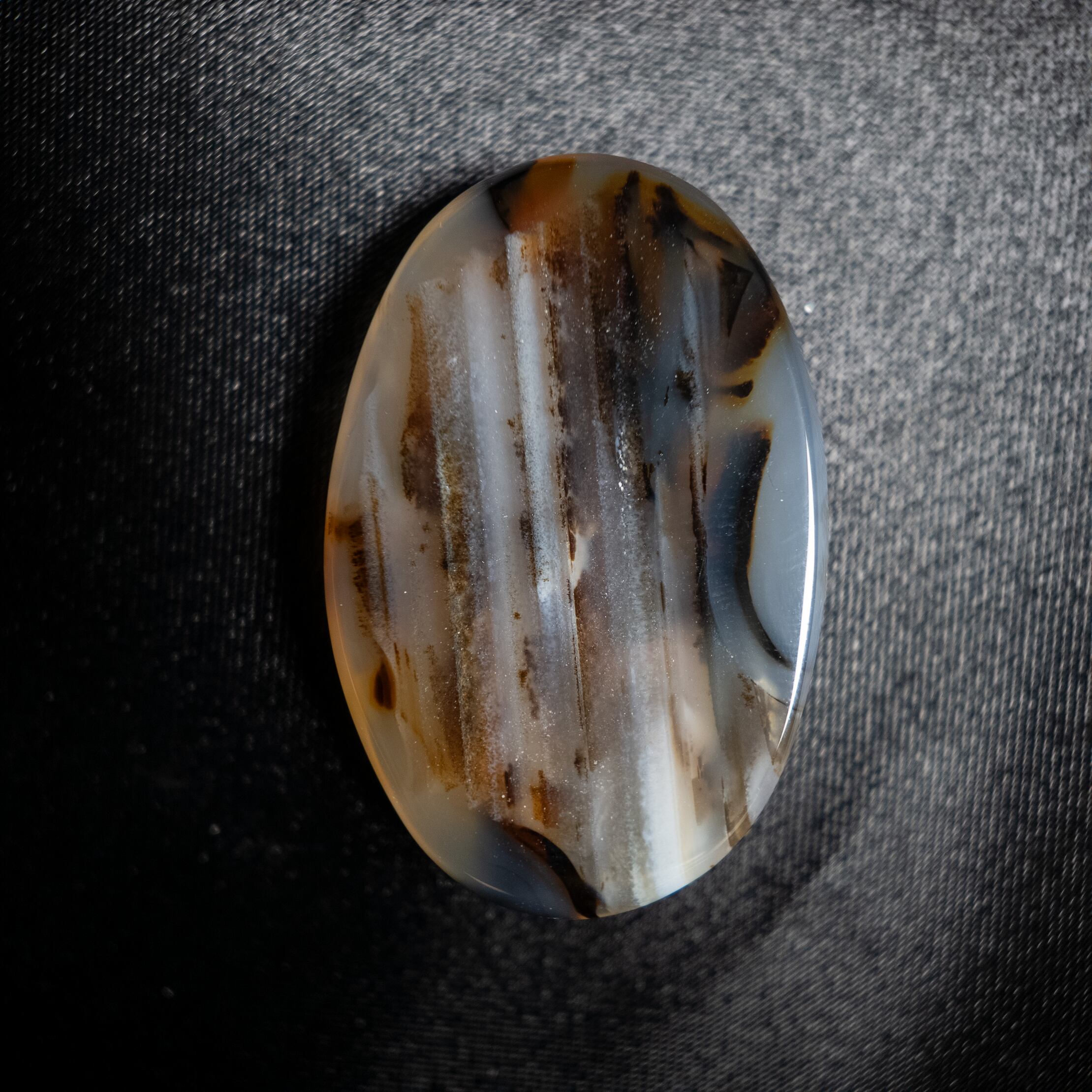 落ち着いたグレーとブラウンが重なり合うモンタナアゲートです。
