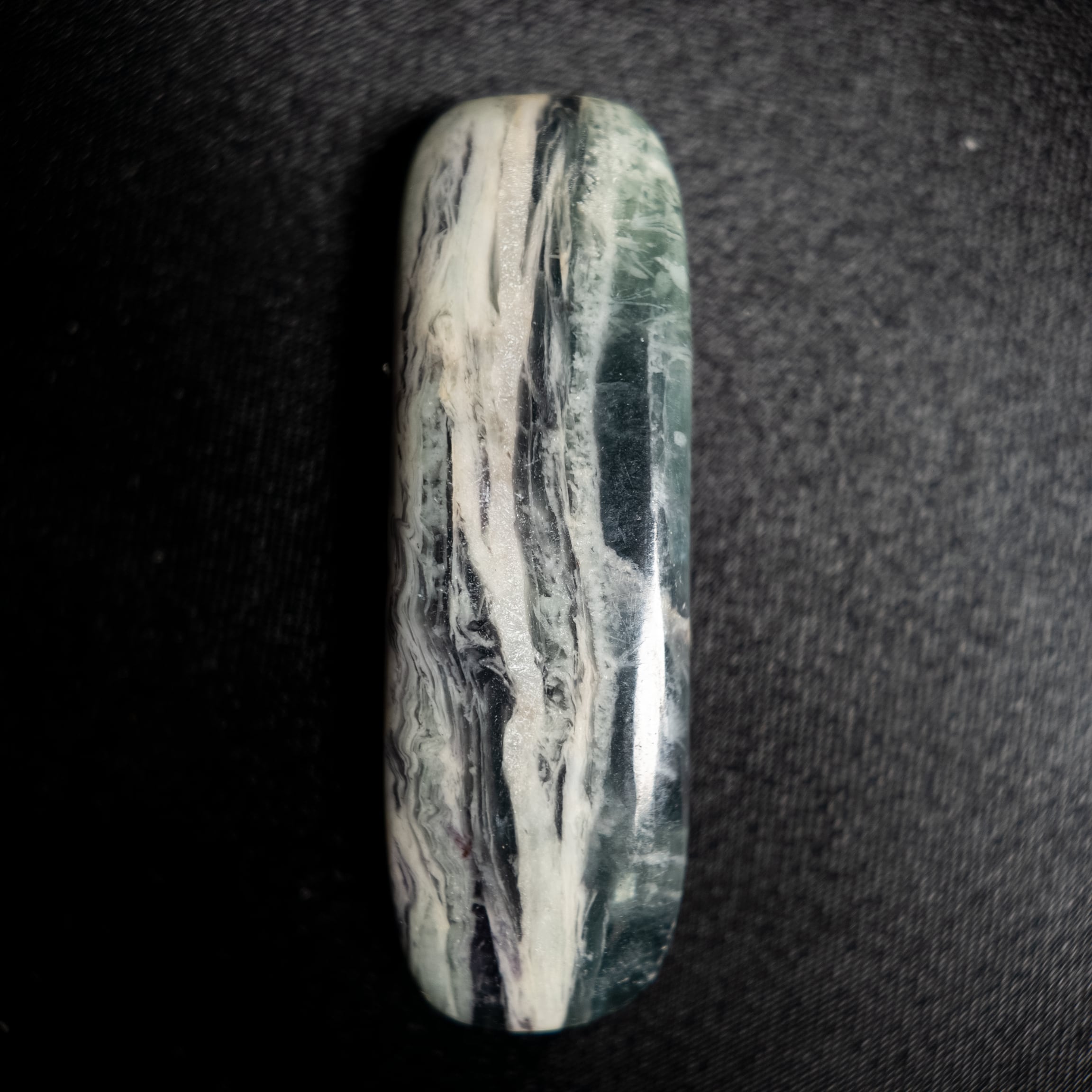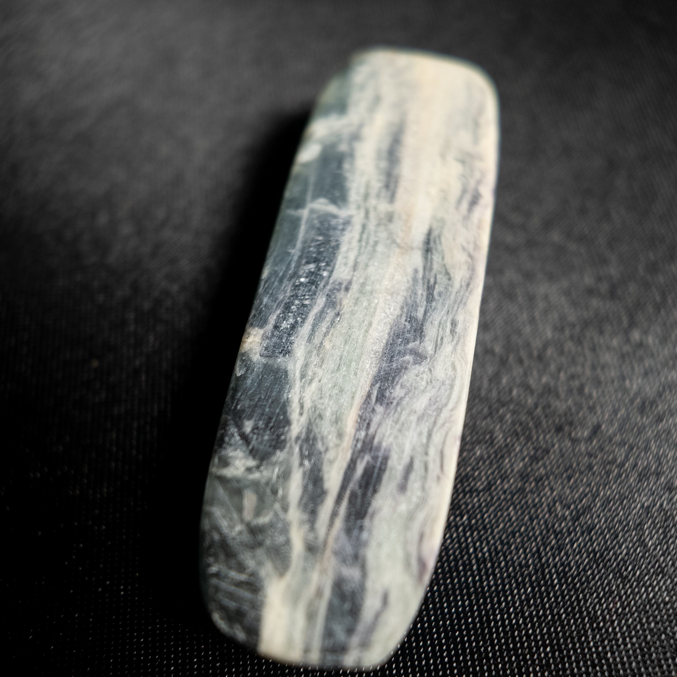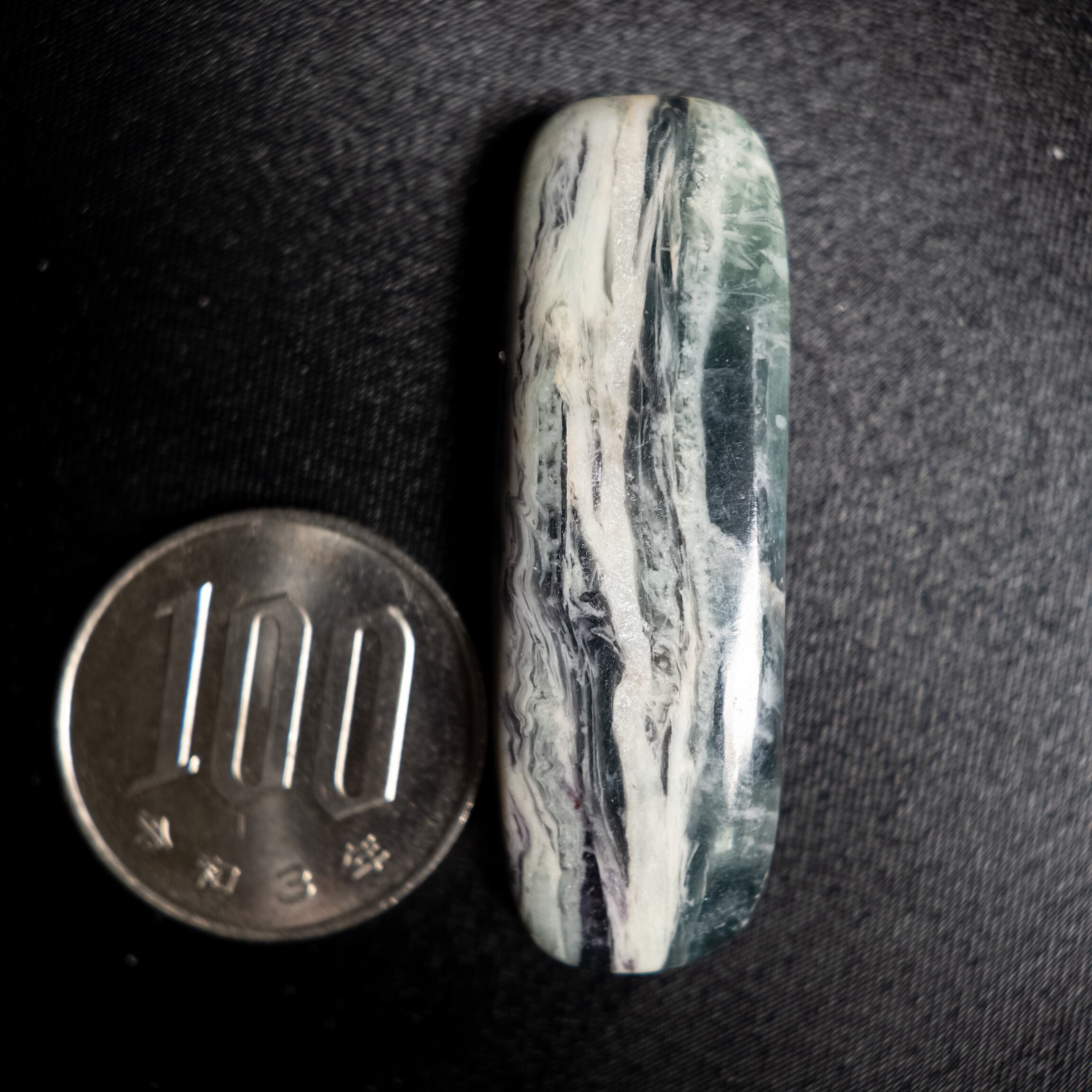 深みのあるグリーンにホワイトの模様が走るケンメレライトです。