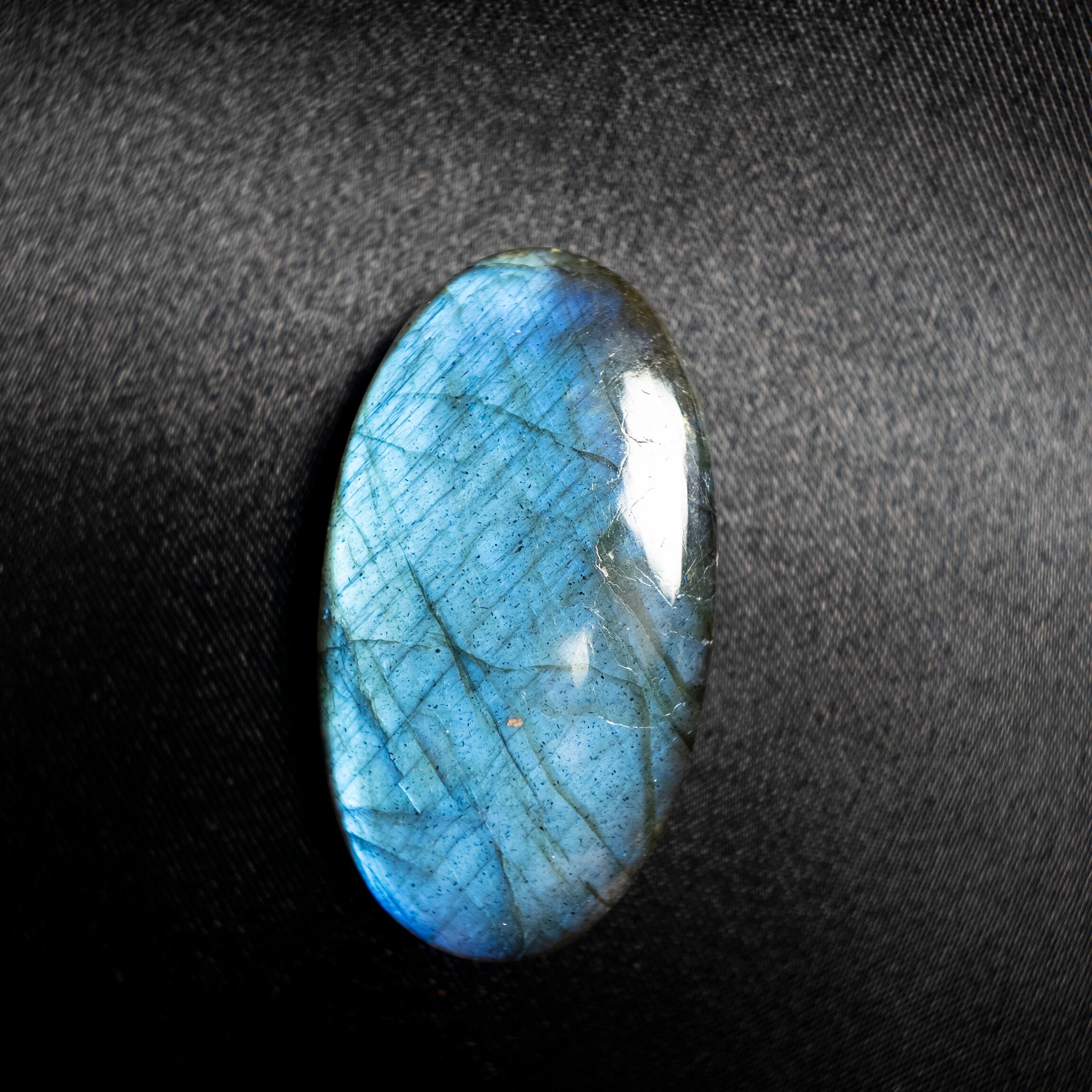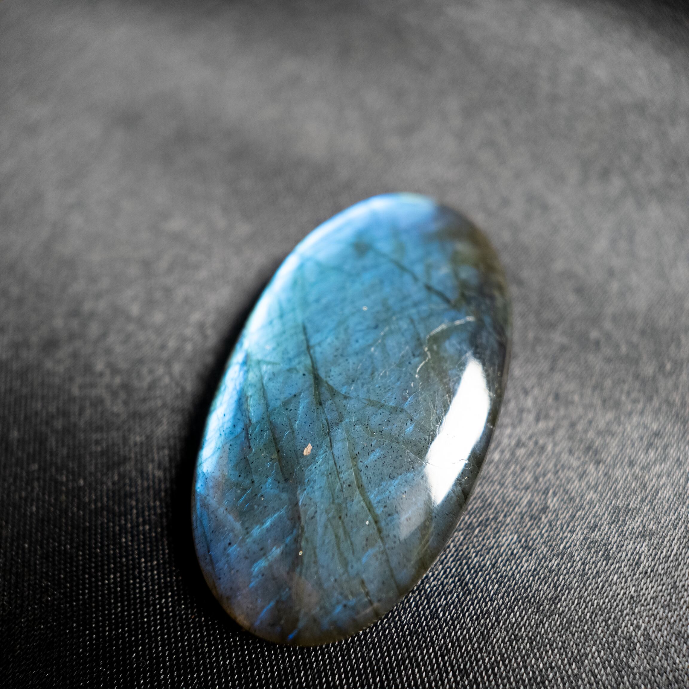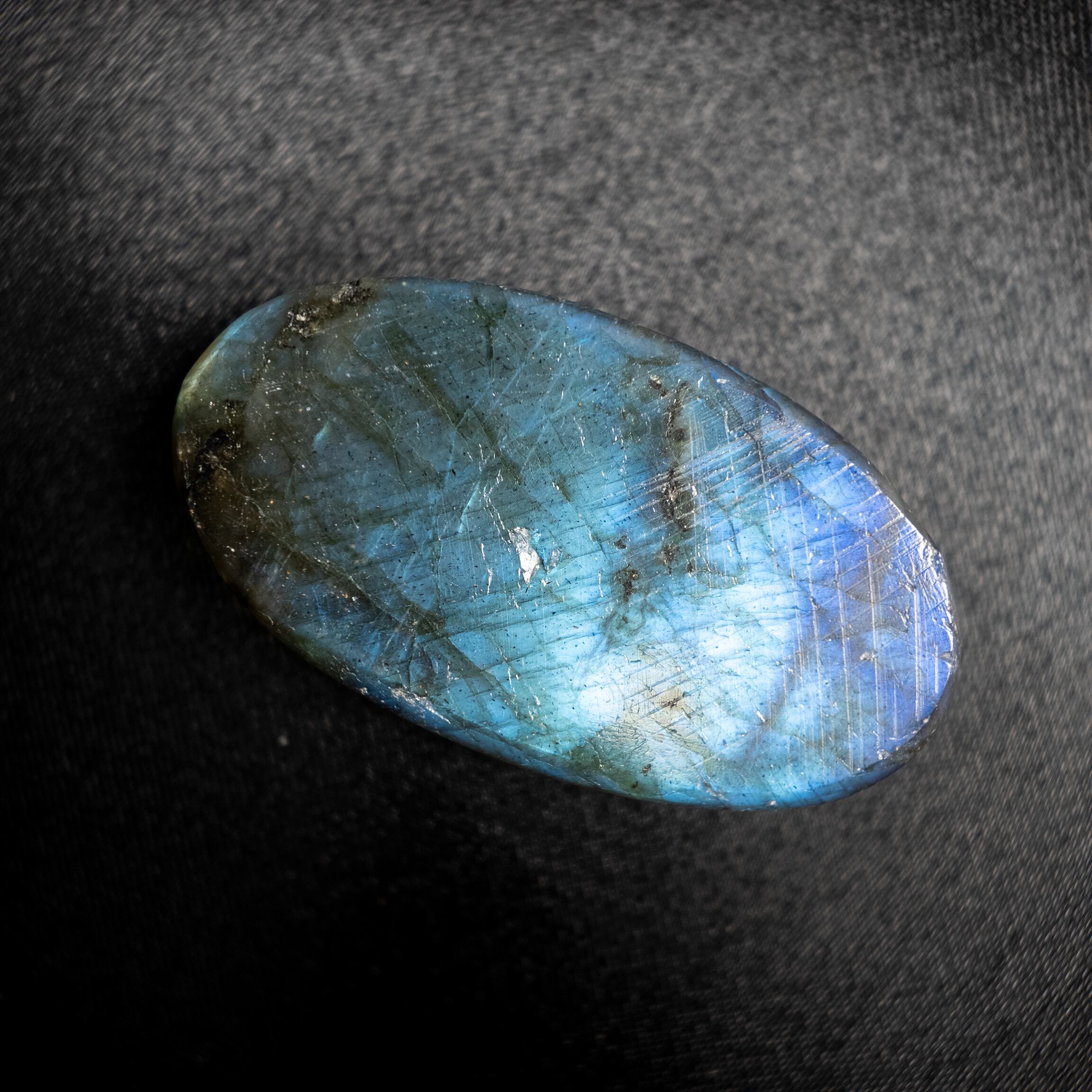 鮮やかなブルーのシラーが美しく浮かび上がるラブラドライトです。