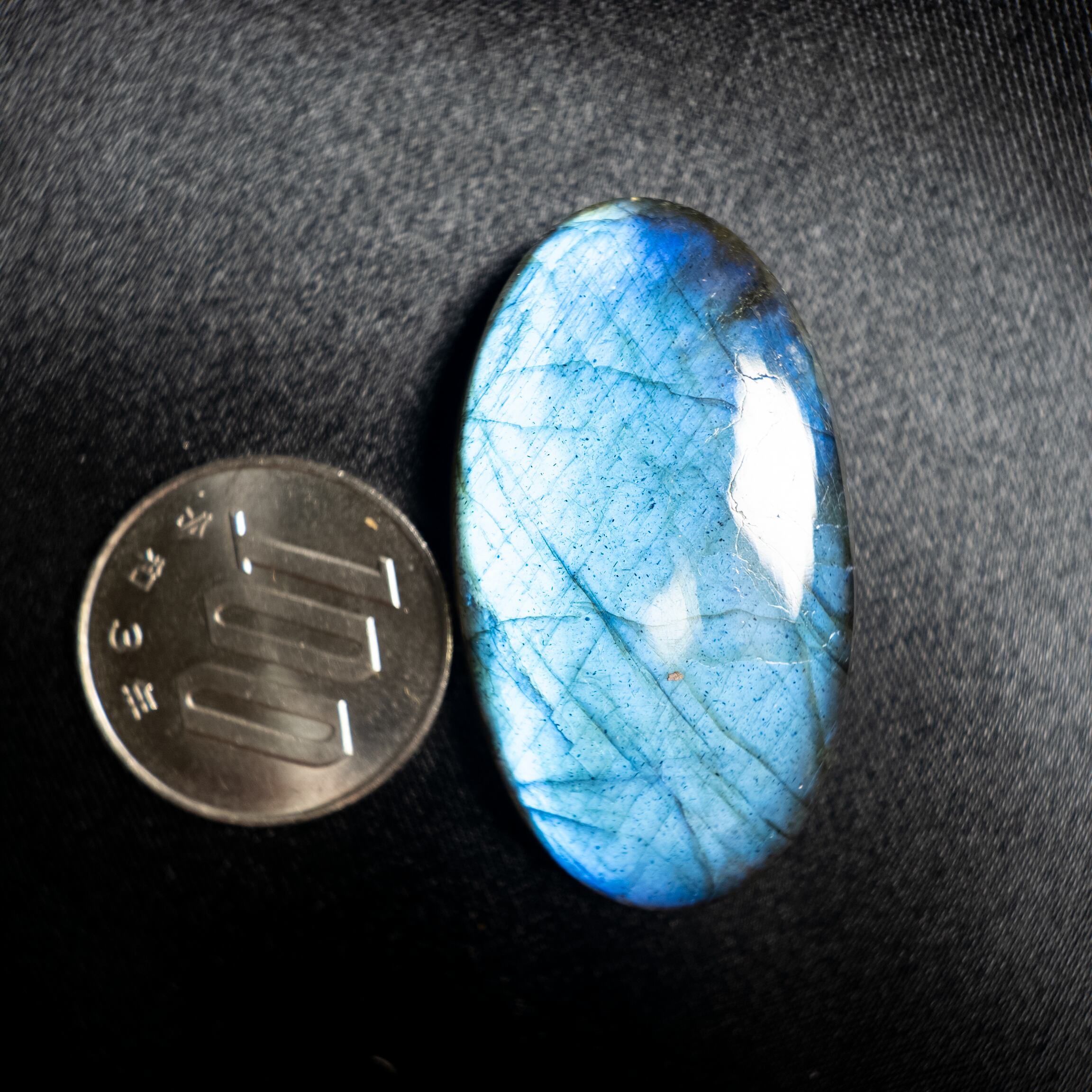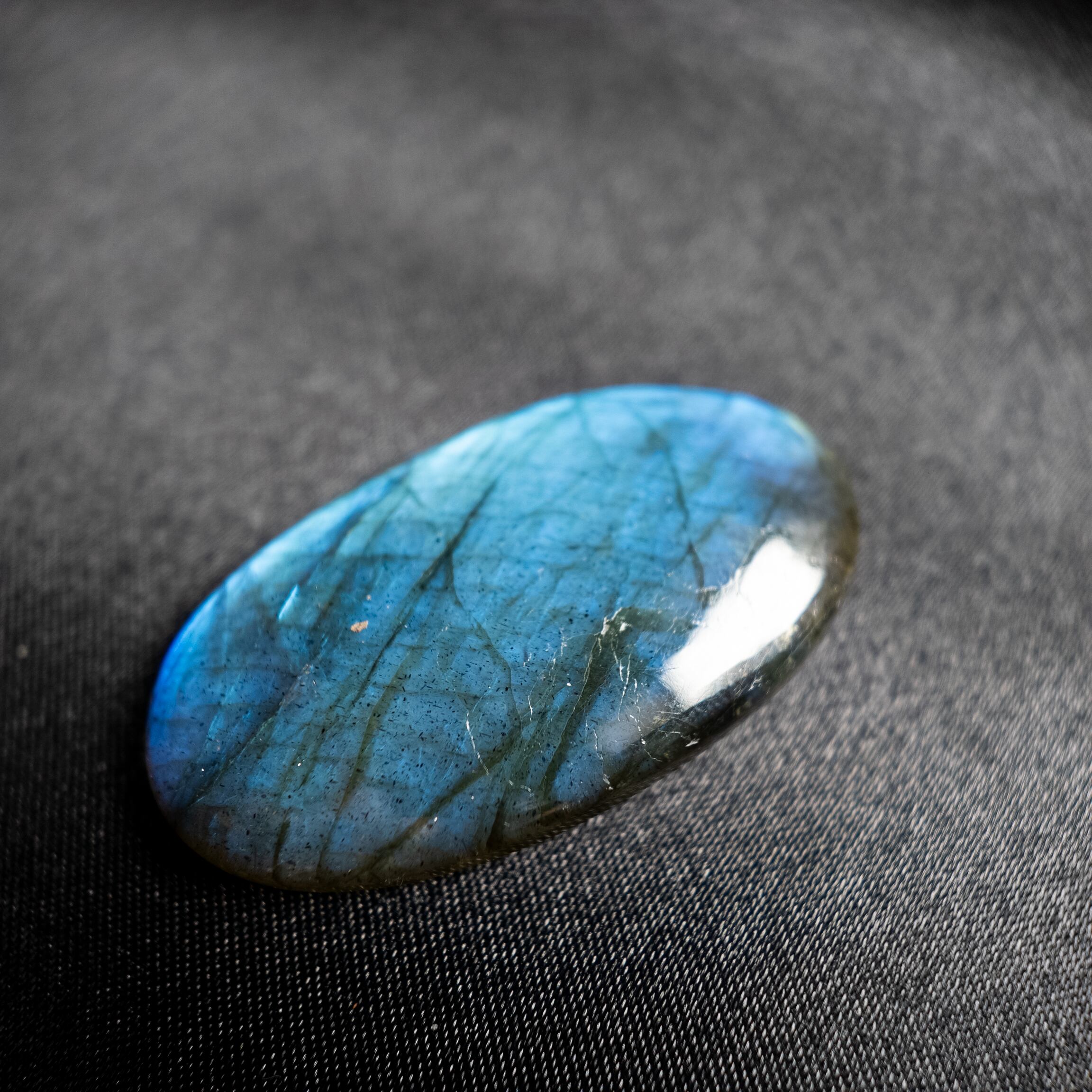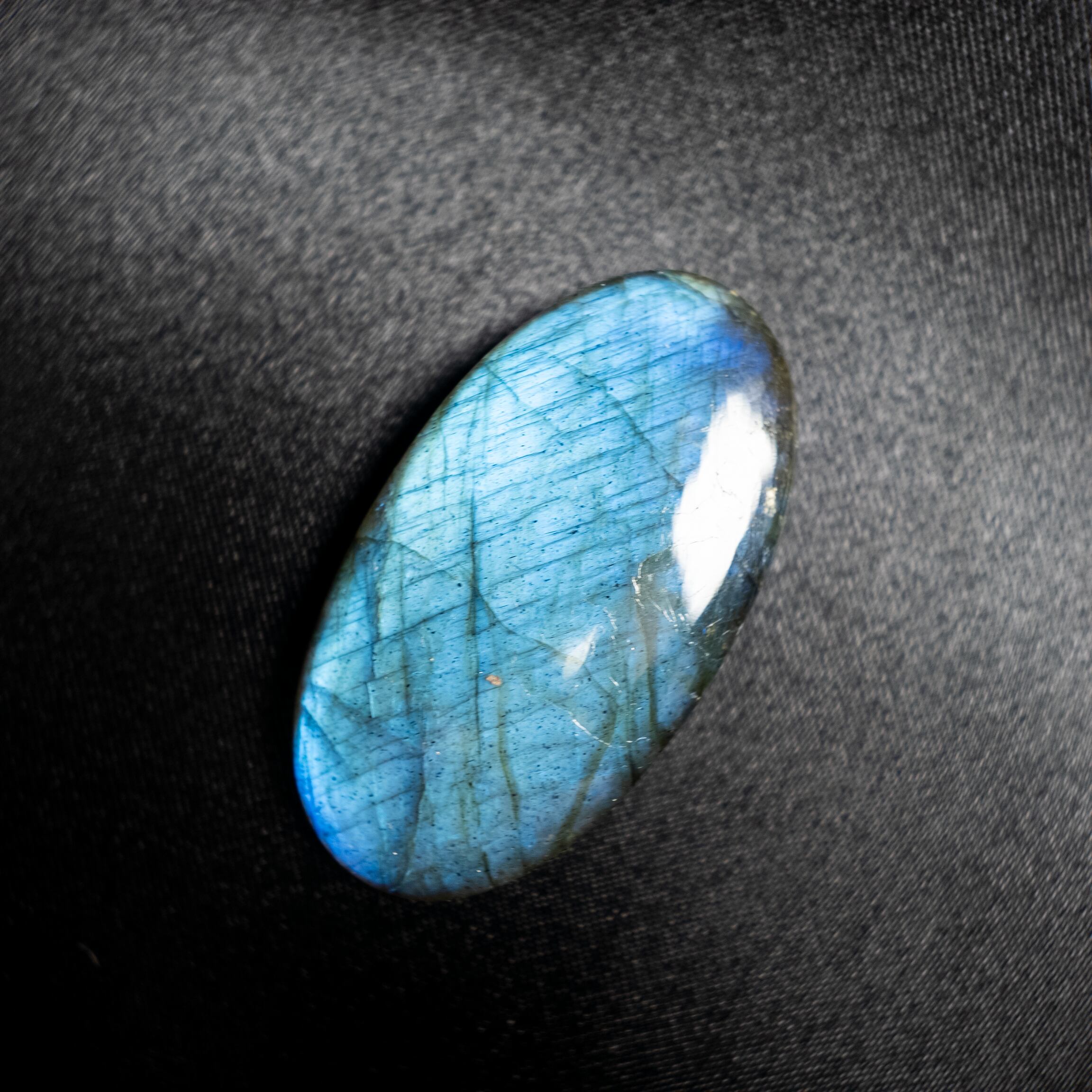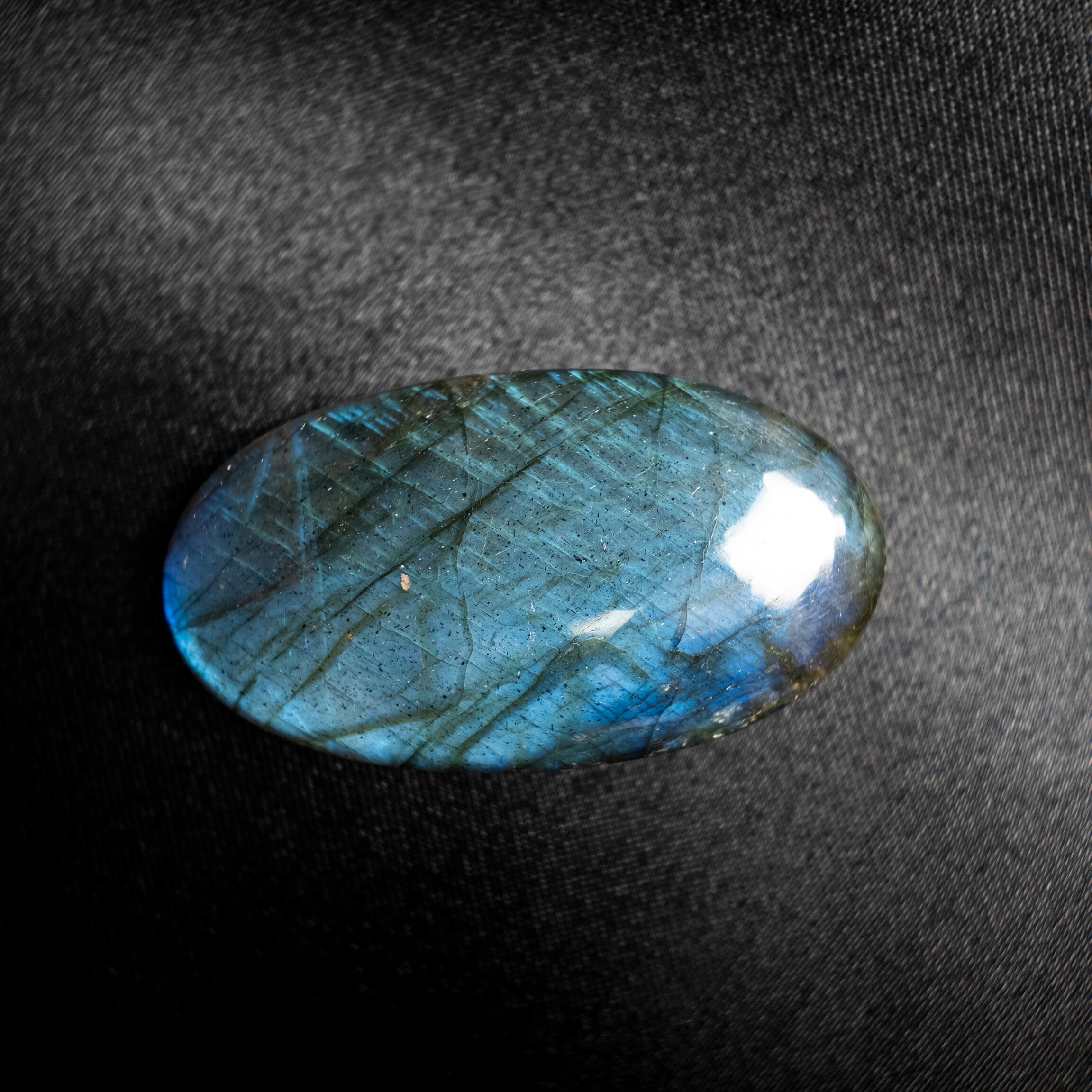 鮮やかなブルーのシラーが美しく浮かび上がるラブラドライトです。