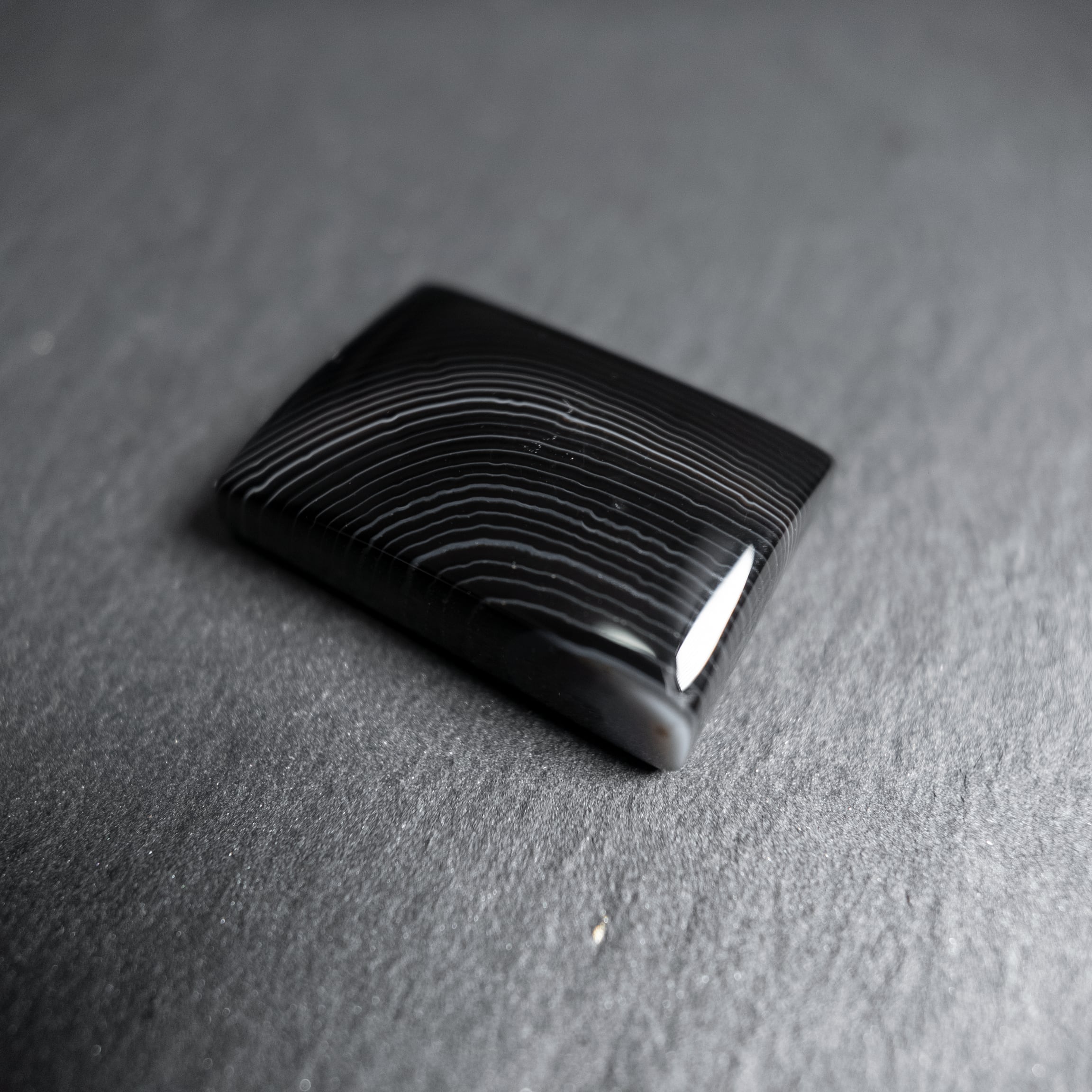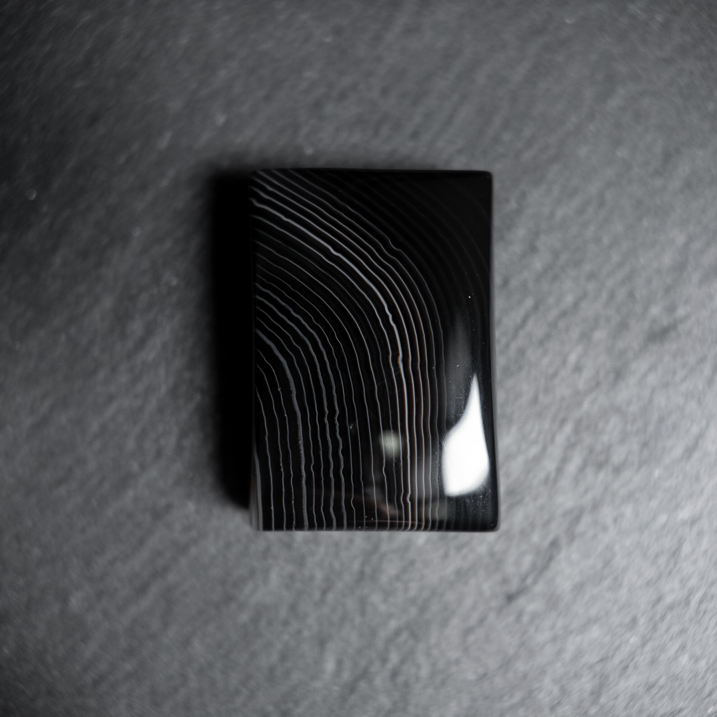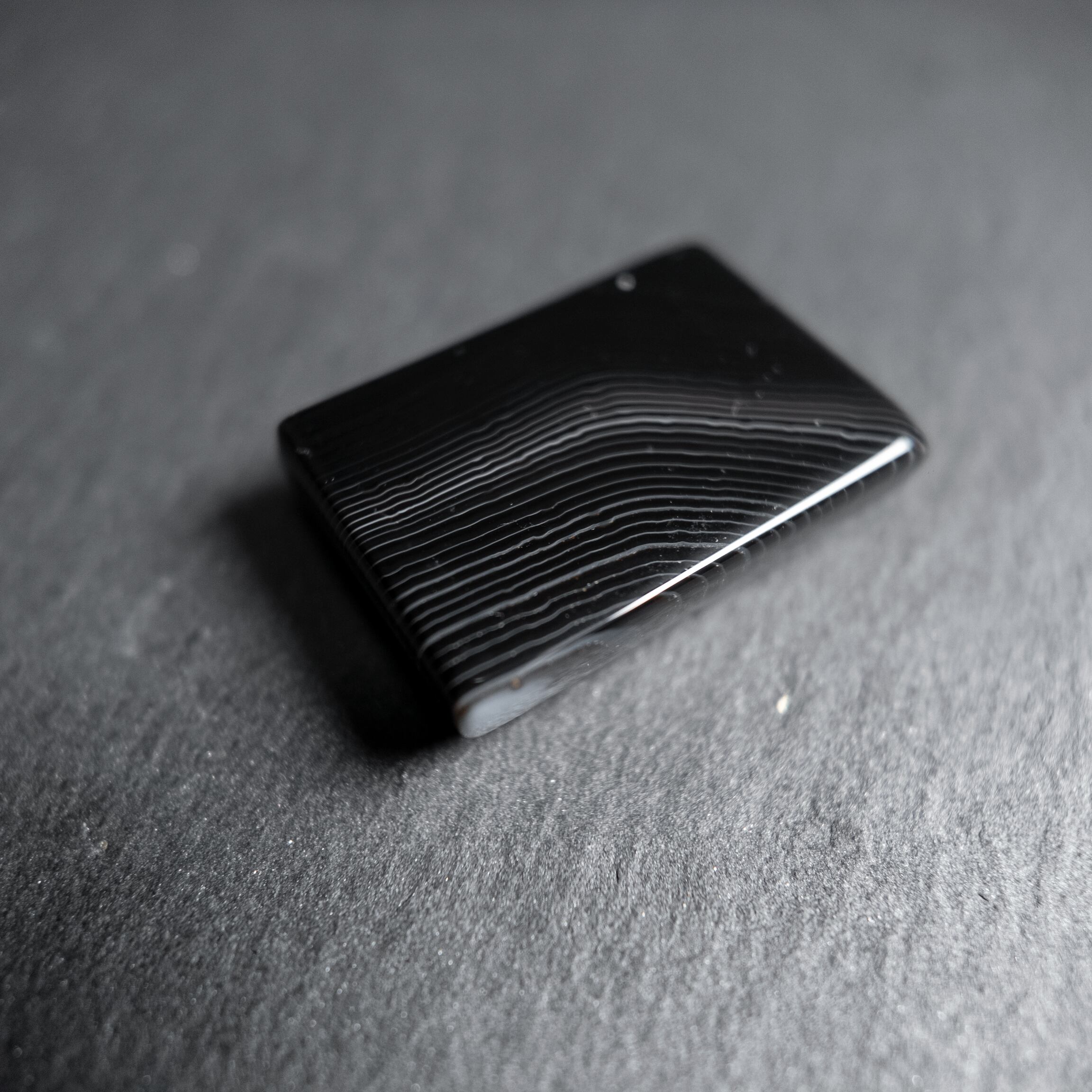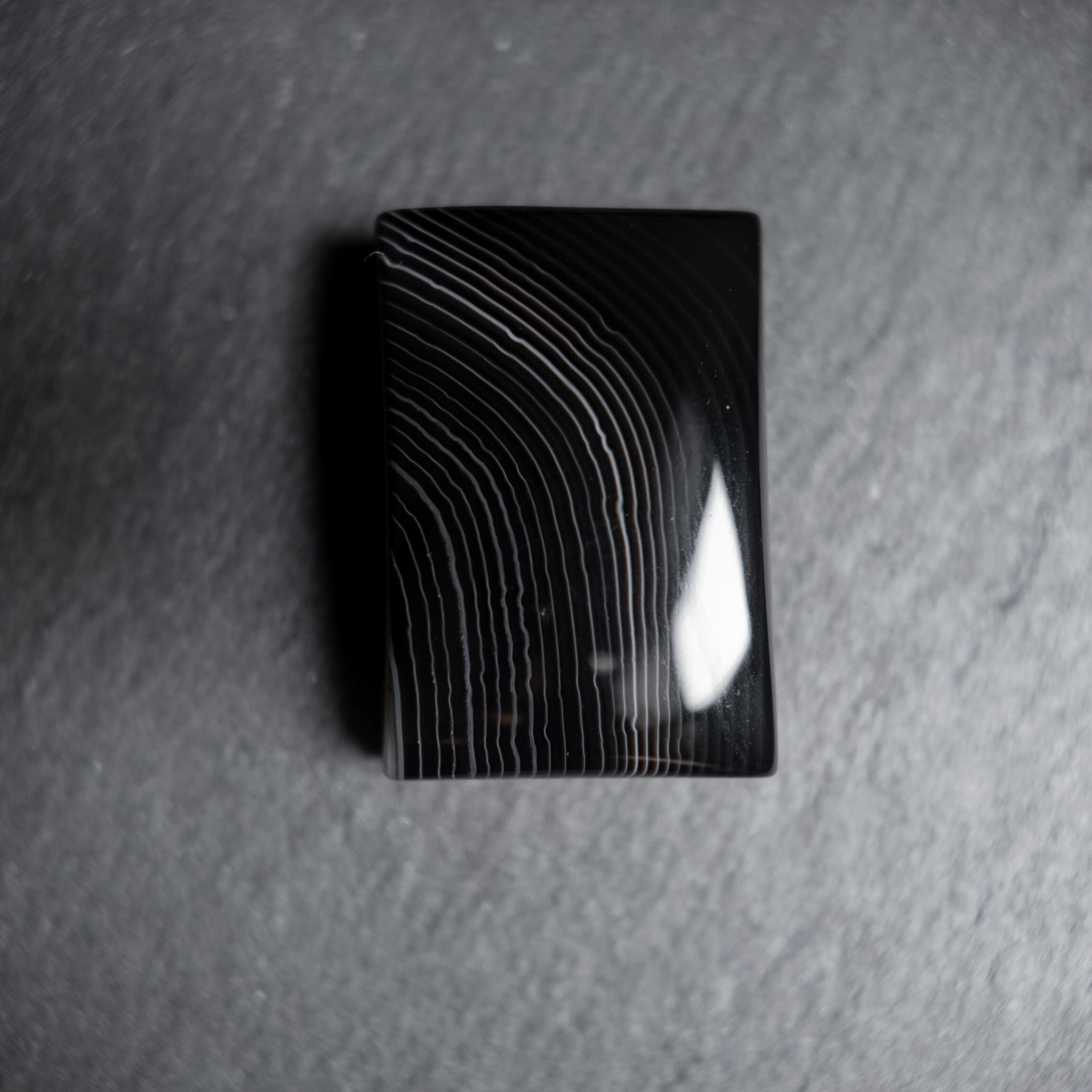 深みのあるブラックに繊細な縞模様が広がるサードオニキスです。
