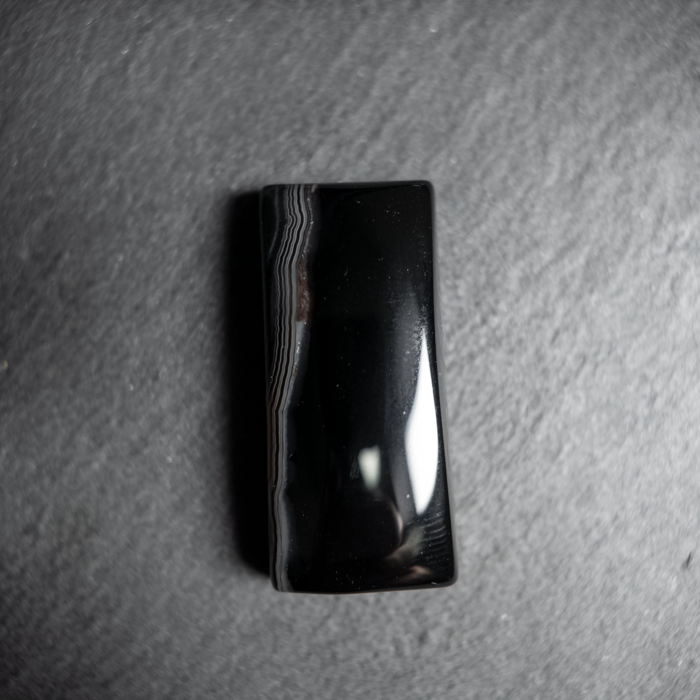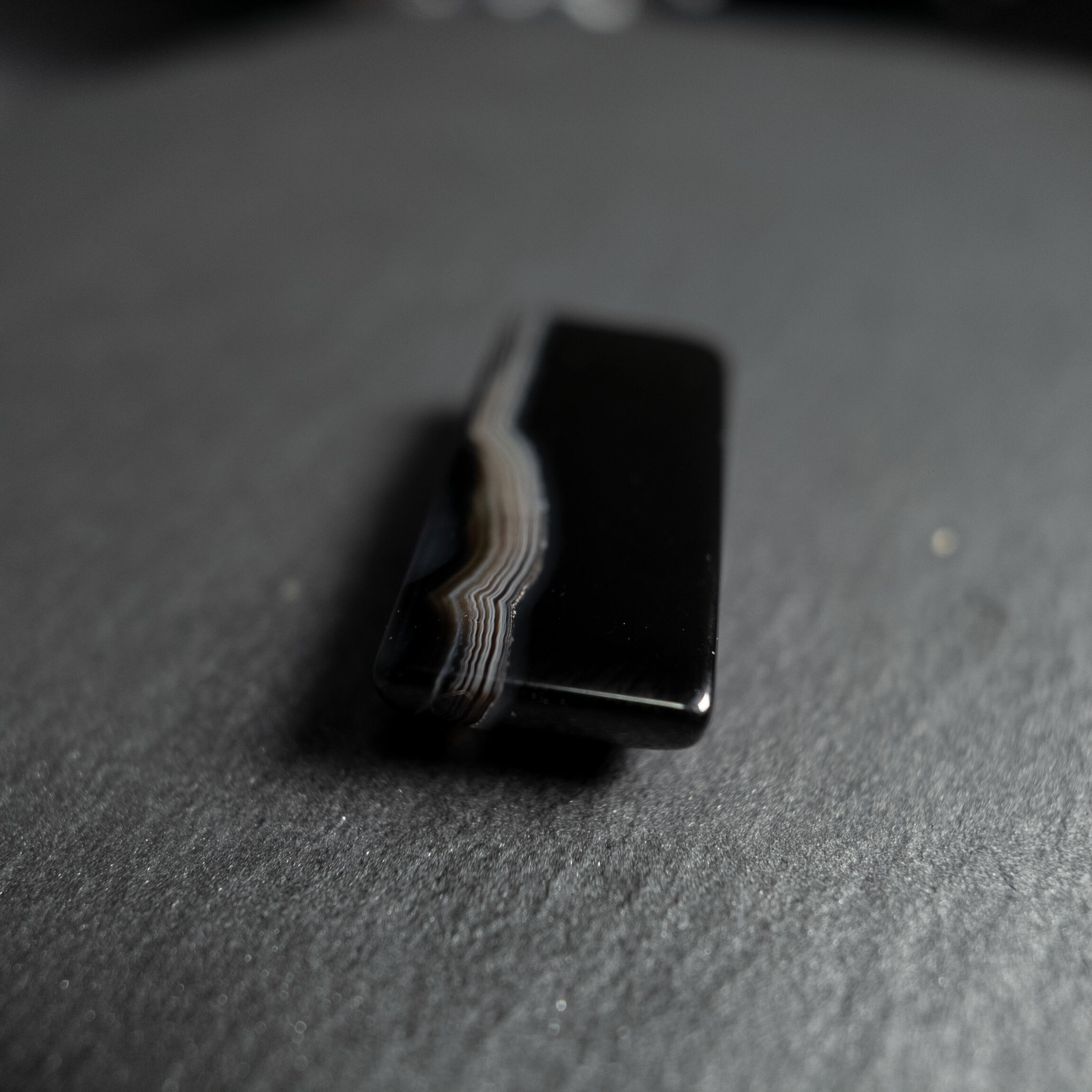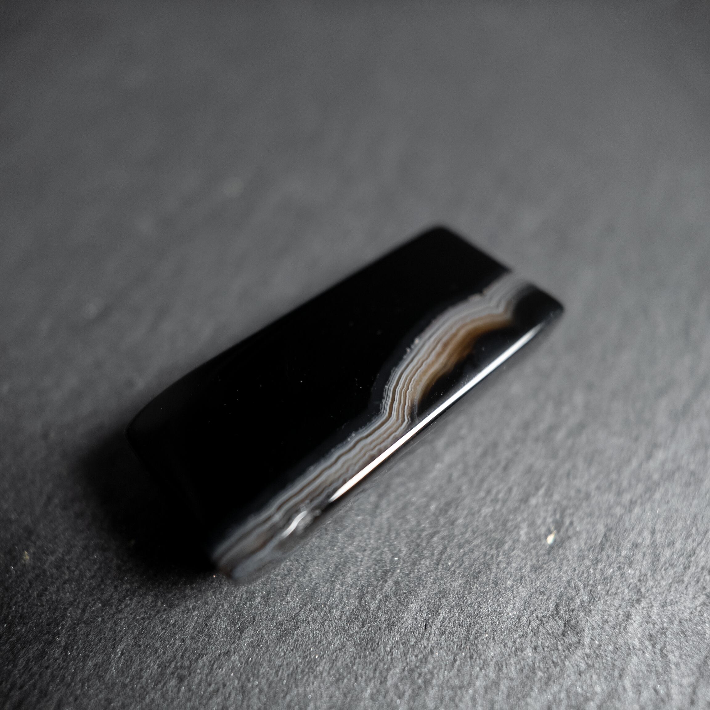 深みのあるブラックに繊細な縞模様が広がるサードオニキスです。